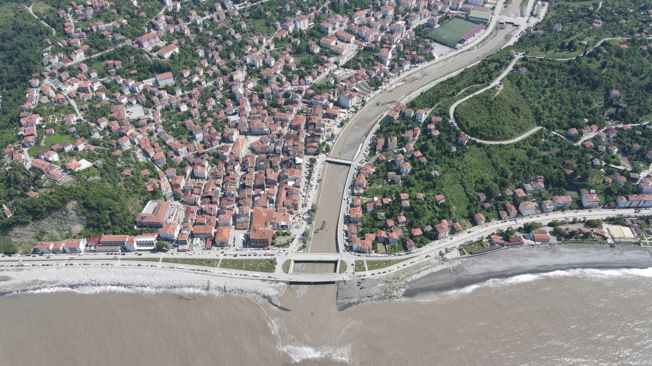 İlçe merkezinde İnebolu Çayı`nın taşıdığı çamur, Karadeniz`in turkuaz rengini değiştirdi.