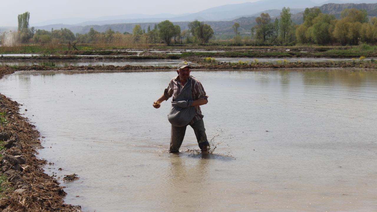 Çiftçiler, ramazan ayı olmasına rağmen bazen kürekle, bazen tırmıkla, bazen de traktörleriyle tarlasını ekime hazırlayıp tohumu ekerek, çeltiğin pirince dönüşüm yolculuğunu başlatıyor.