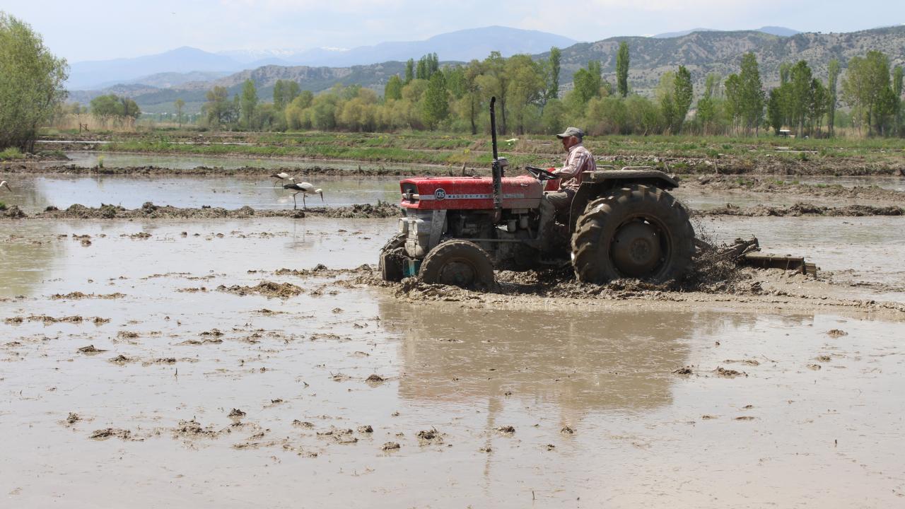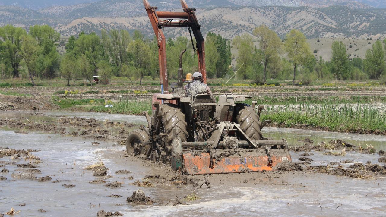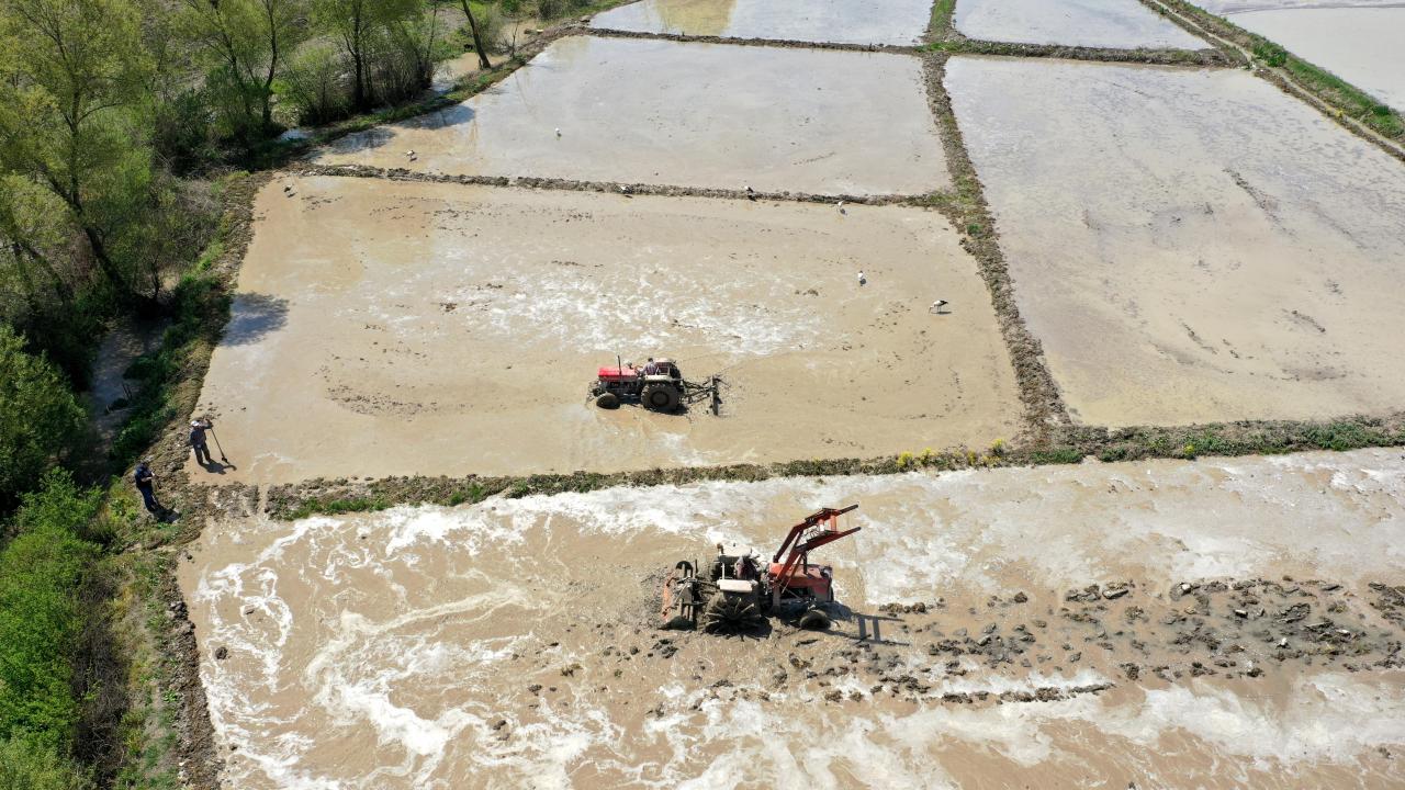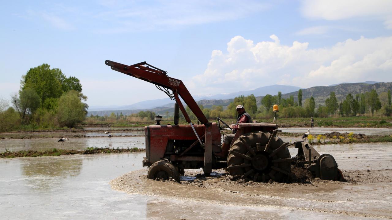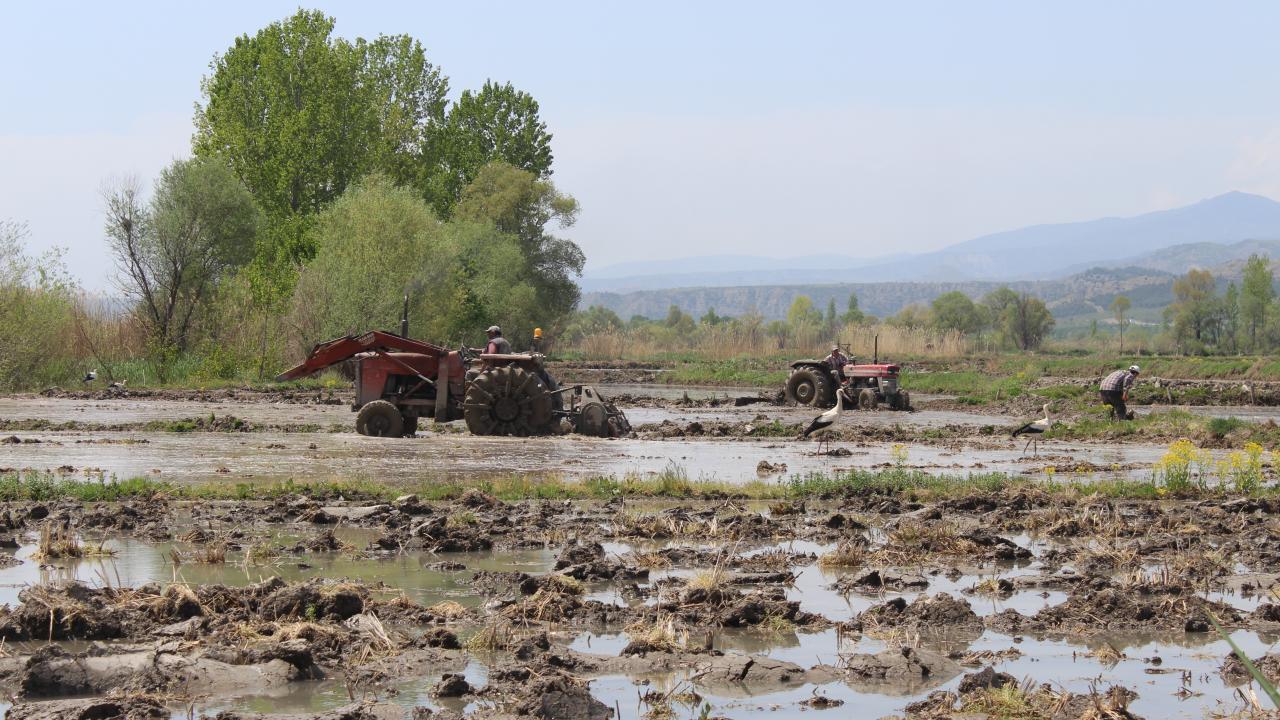 Çeltik tarlalarında genellikle nisan ayının ilk günlerinde başlayan hazırlık süreci, bu yıl olumsuz hava şartları nedeniyle nisan ayının sonlarını buldu.