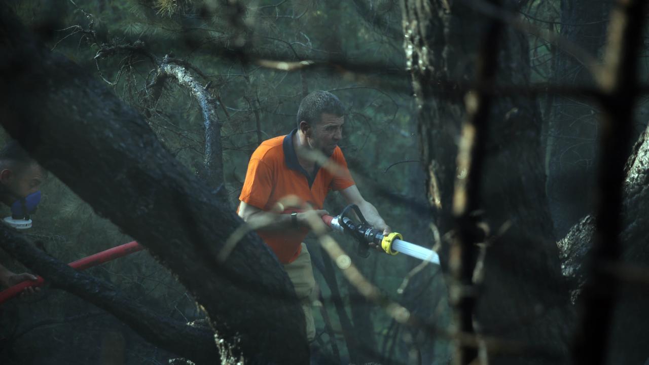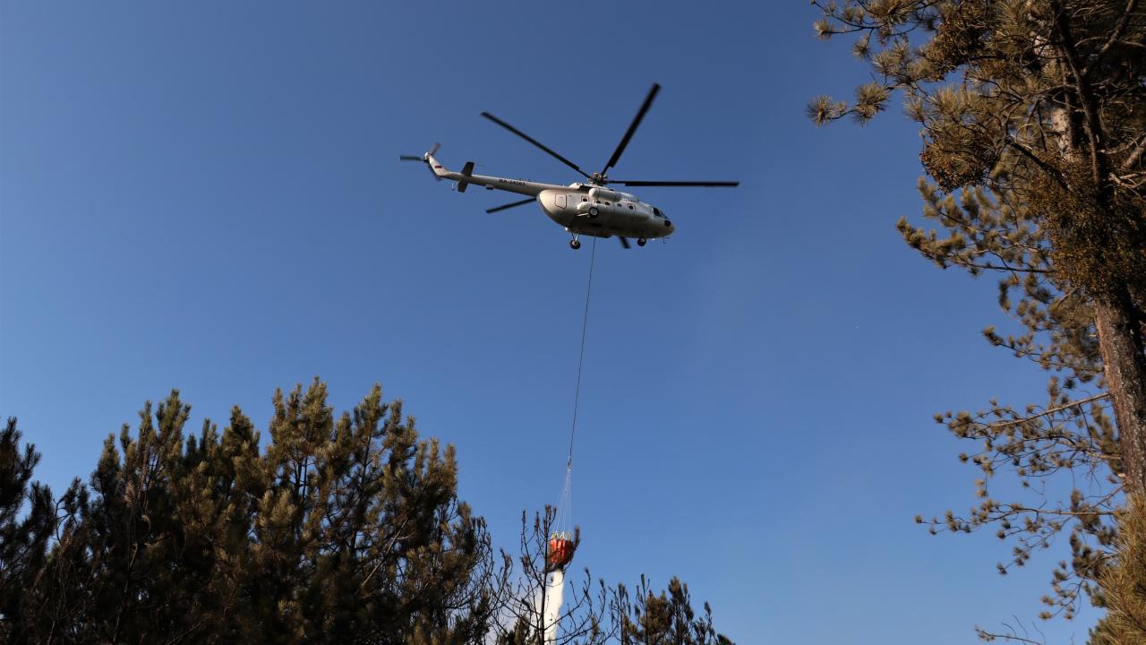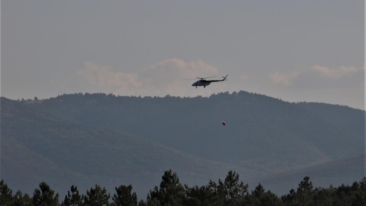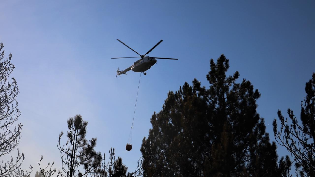 Havadan helikopterle de müdahale edilen yangının kontrol altına alma çalışmaları sürüyor.