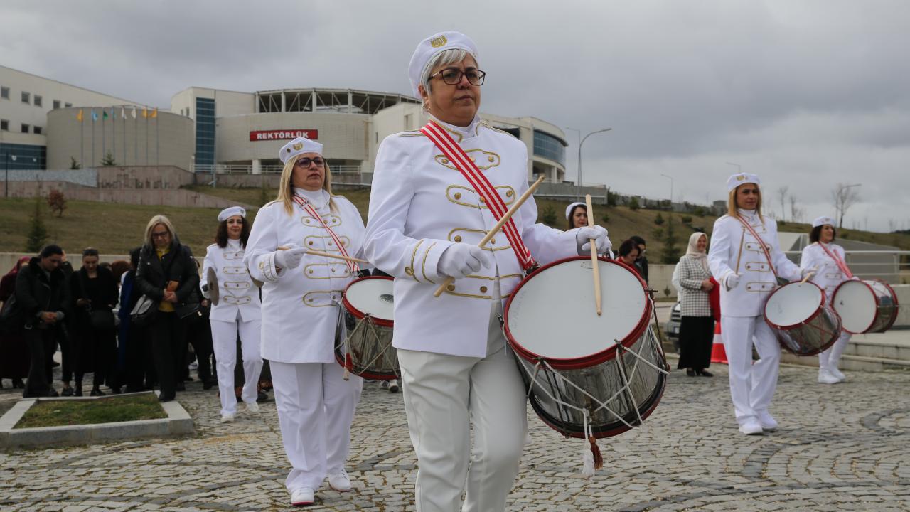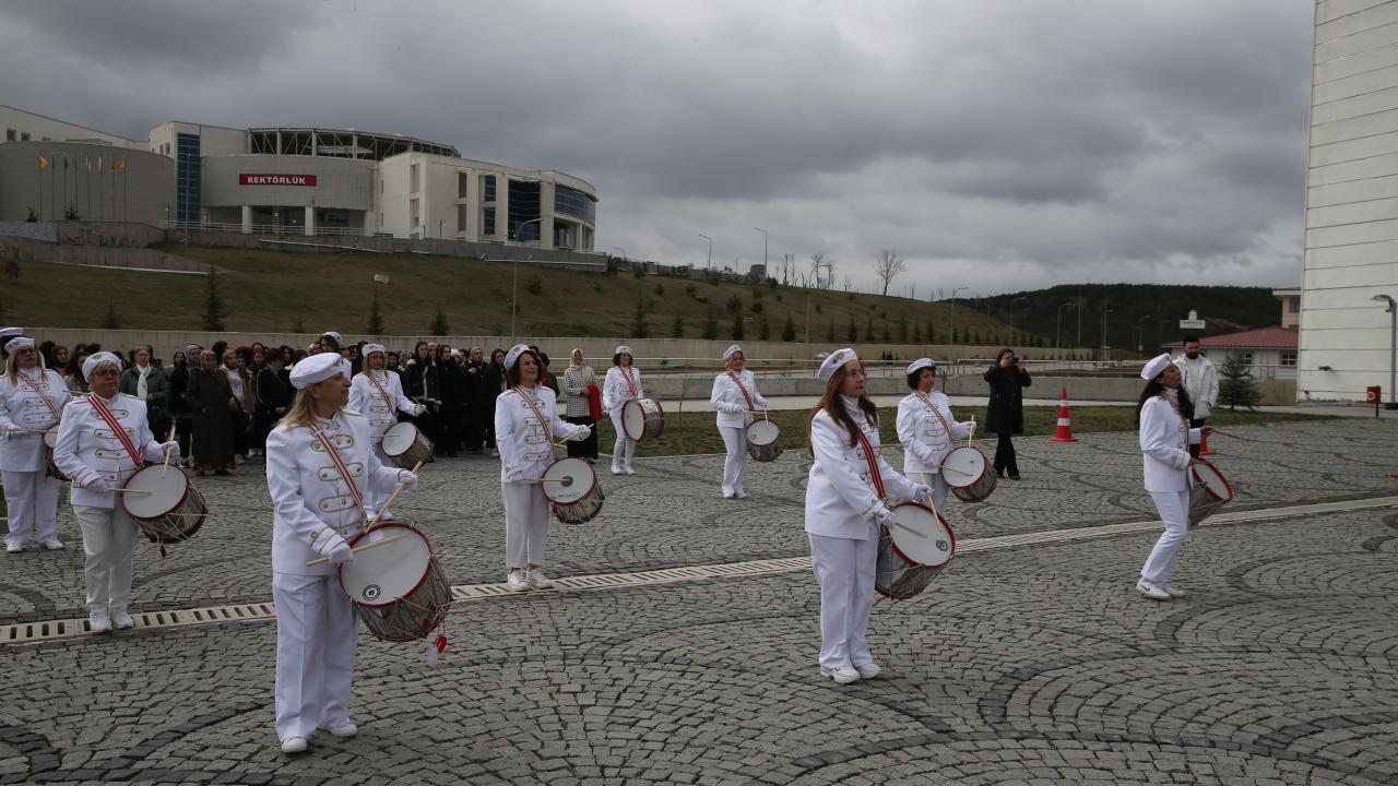Kastamonu Üniversitesi Kadın ve Aile Çalışmaları Uygulamaları ve Araştırma Merkezi ile Halime Çavuş Kadın Derneğinin ortaklaşa düzenlediği etkinlikte, kadınlardan kurulu bando takımı, kampüste Merkez Kütüphanesi`ne kadar marşlar çalarak yürüdü.