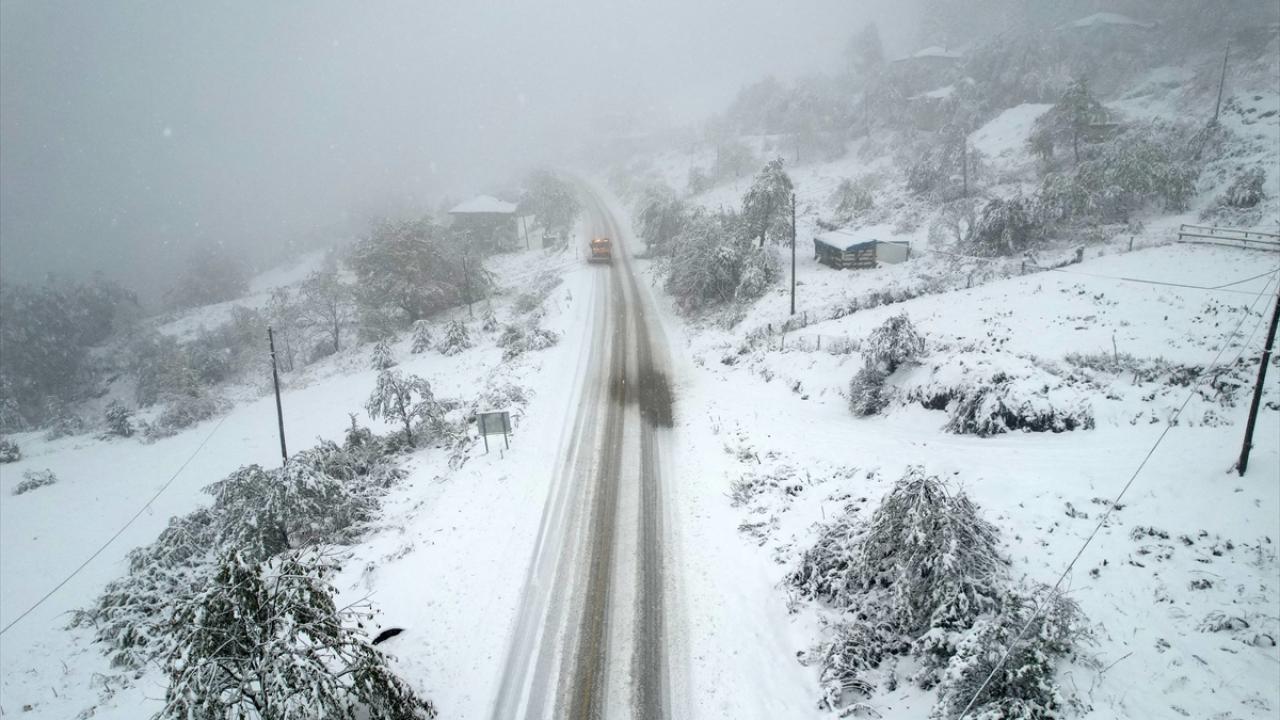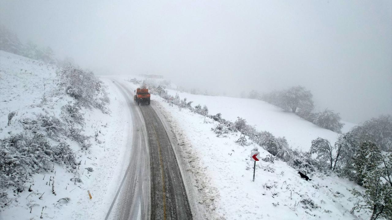 Kar yağışının ardından Karayolları ve İl Özel İdare ekipleri kar küreme çalışması başlattı.