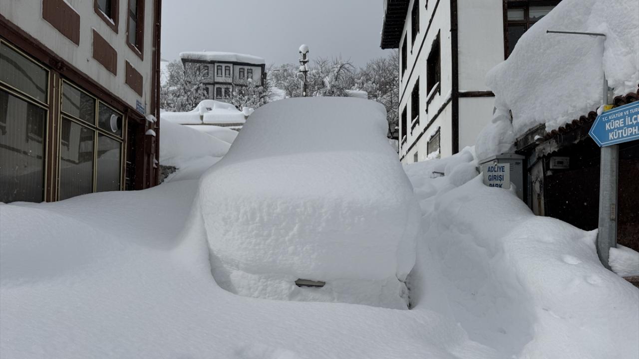 Küre ilçesinde yoğun kar yağışı etkili oldu. Kar kalınlığının yer yer bir buçuk metreye ulaştığı ilçede vatandaşların araçları kar altında kaldı.