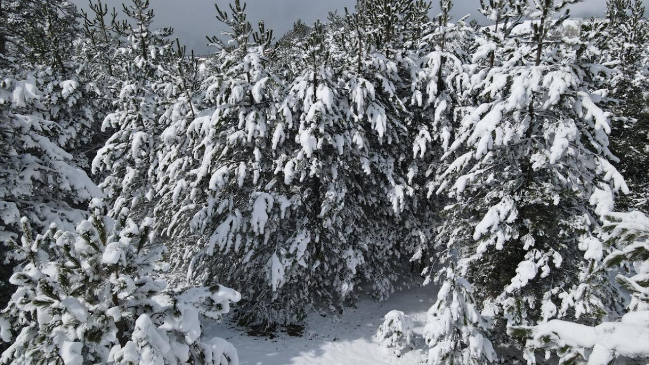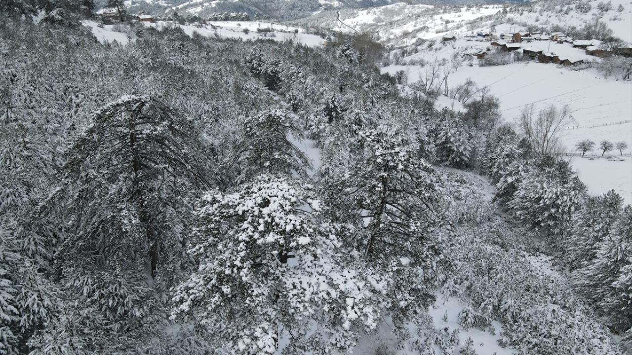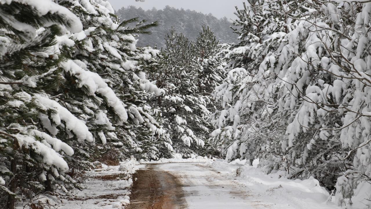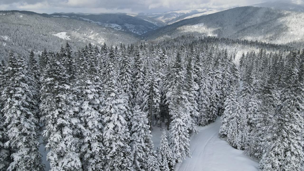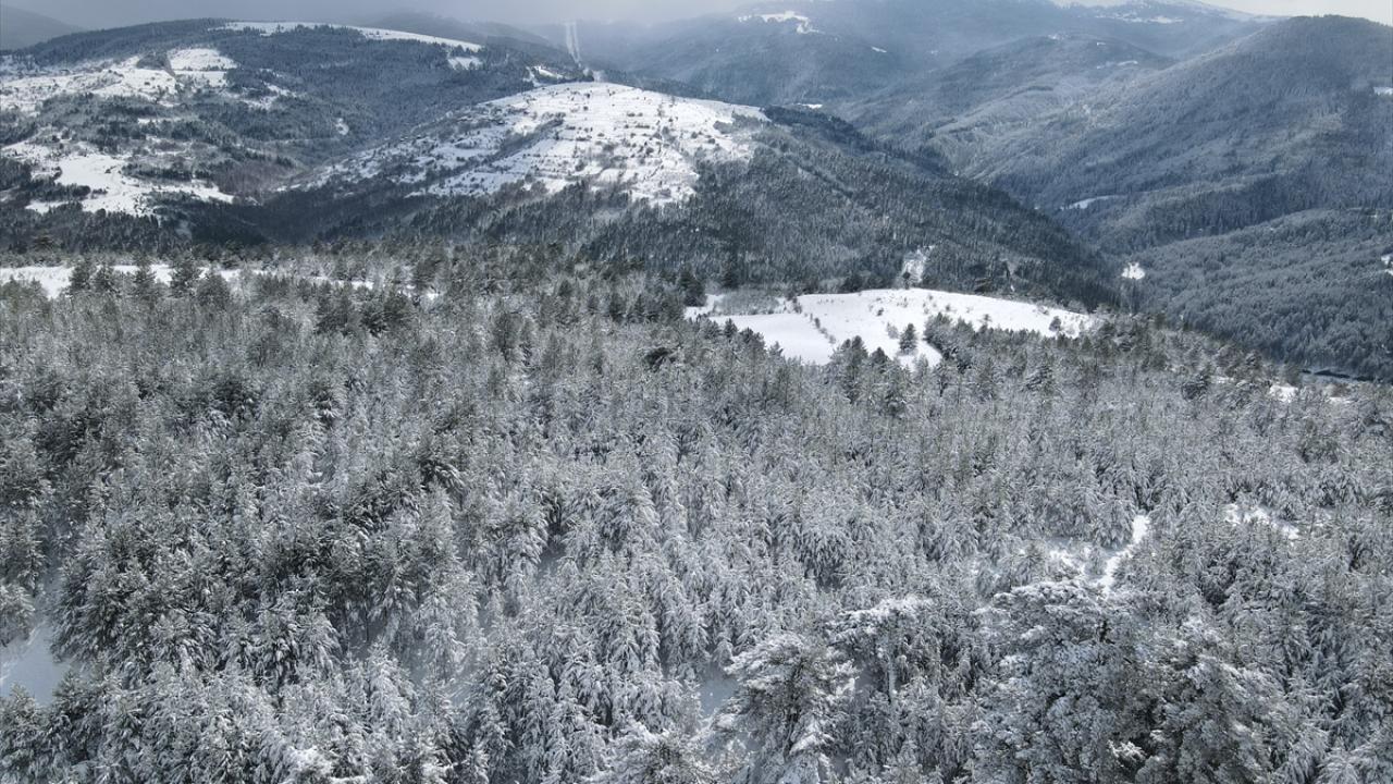 Kastamonu'nun yüksek kesimlerinde etkili olan kar yağışının ardından ormanlık alanlar beyaz örtüyle kaplandı.
