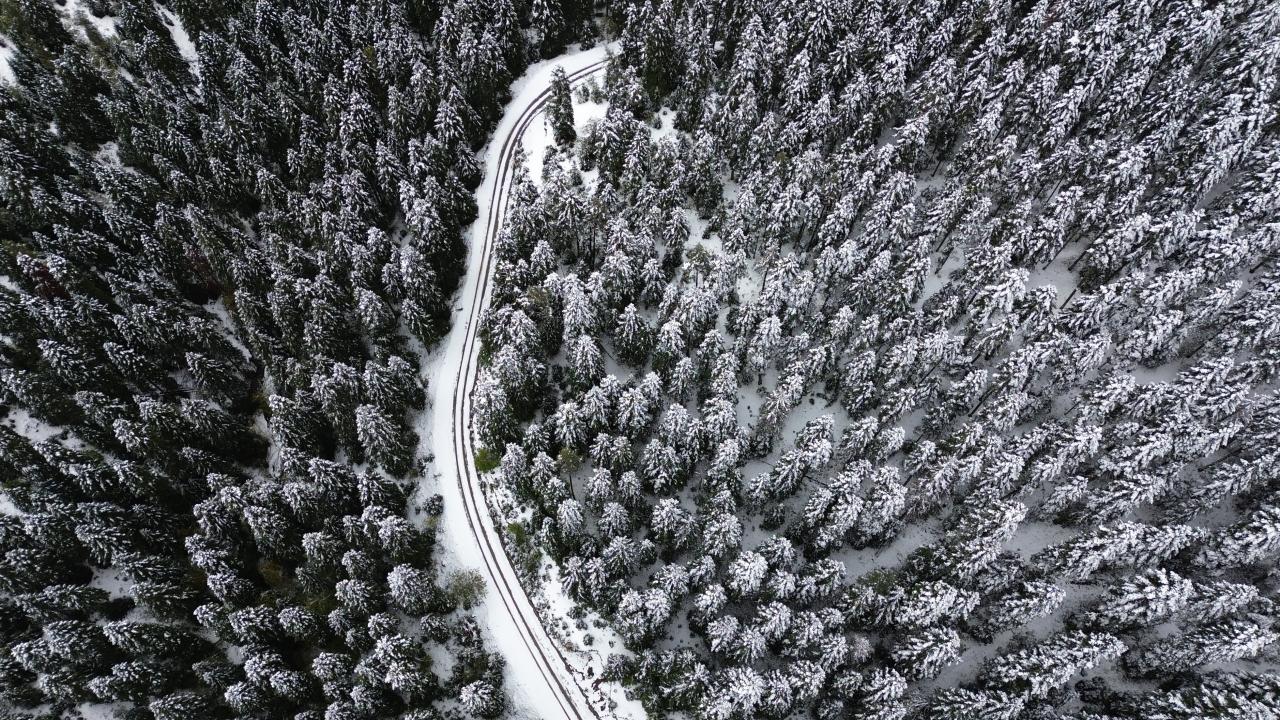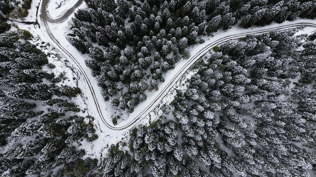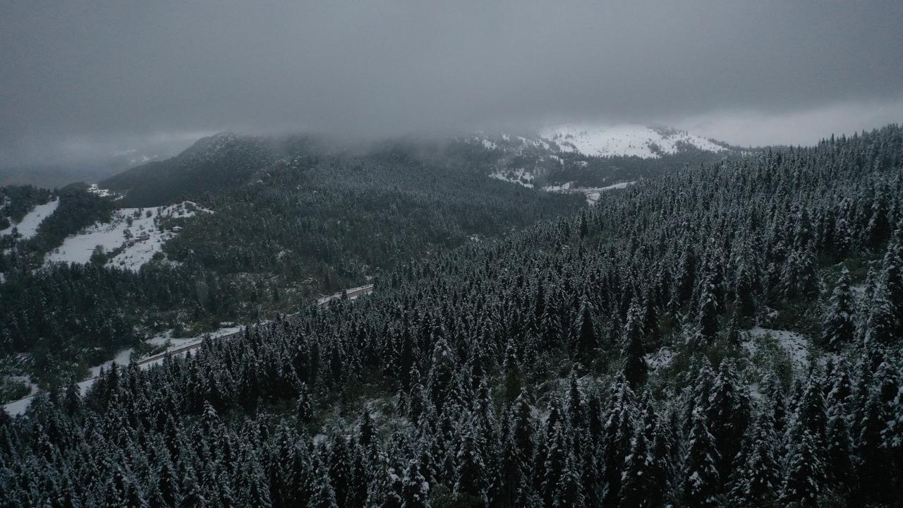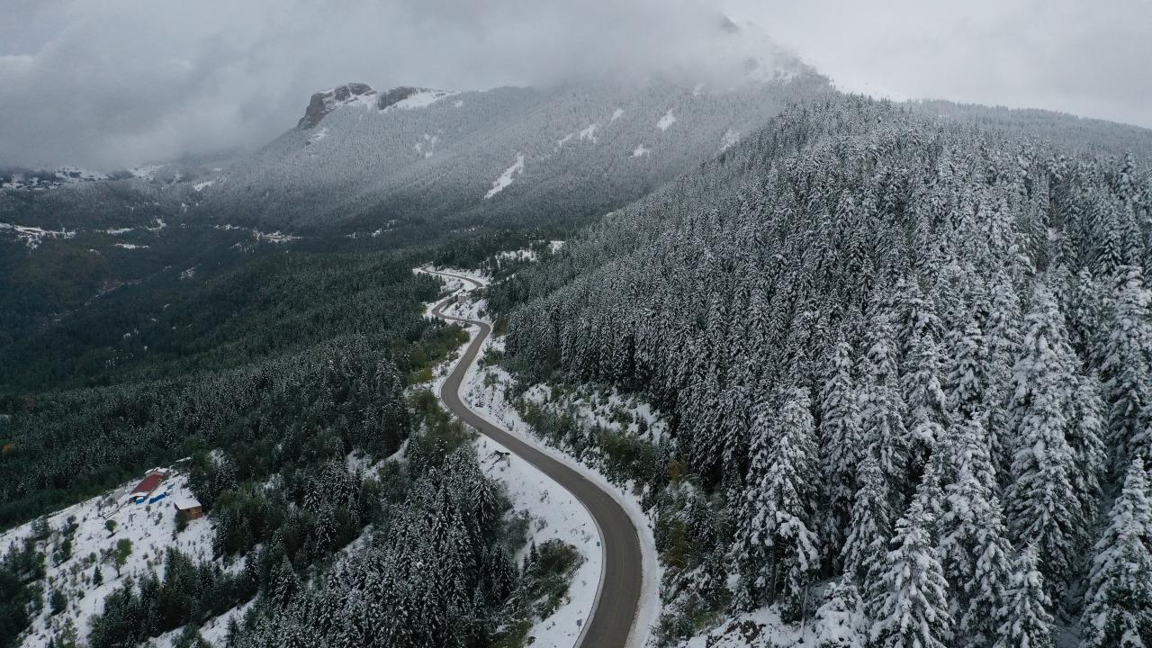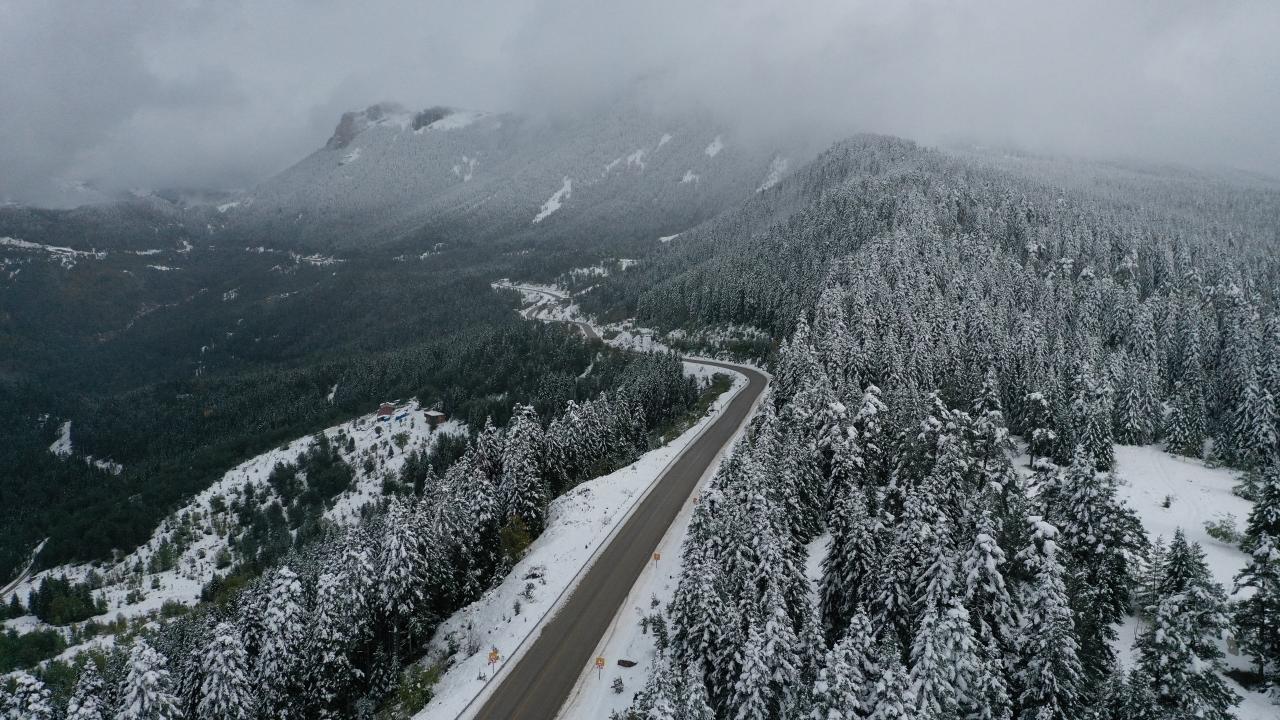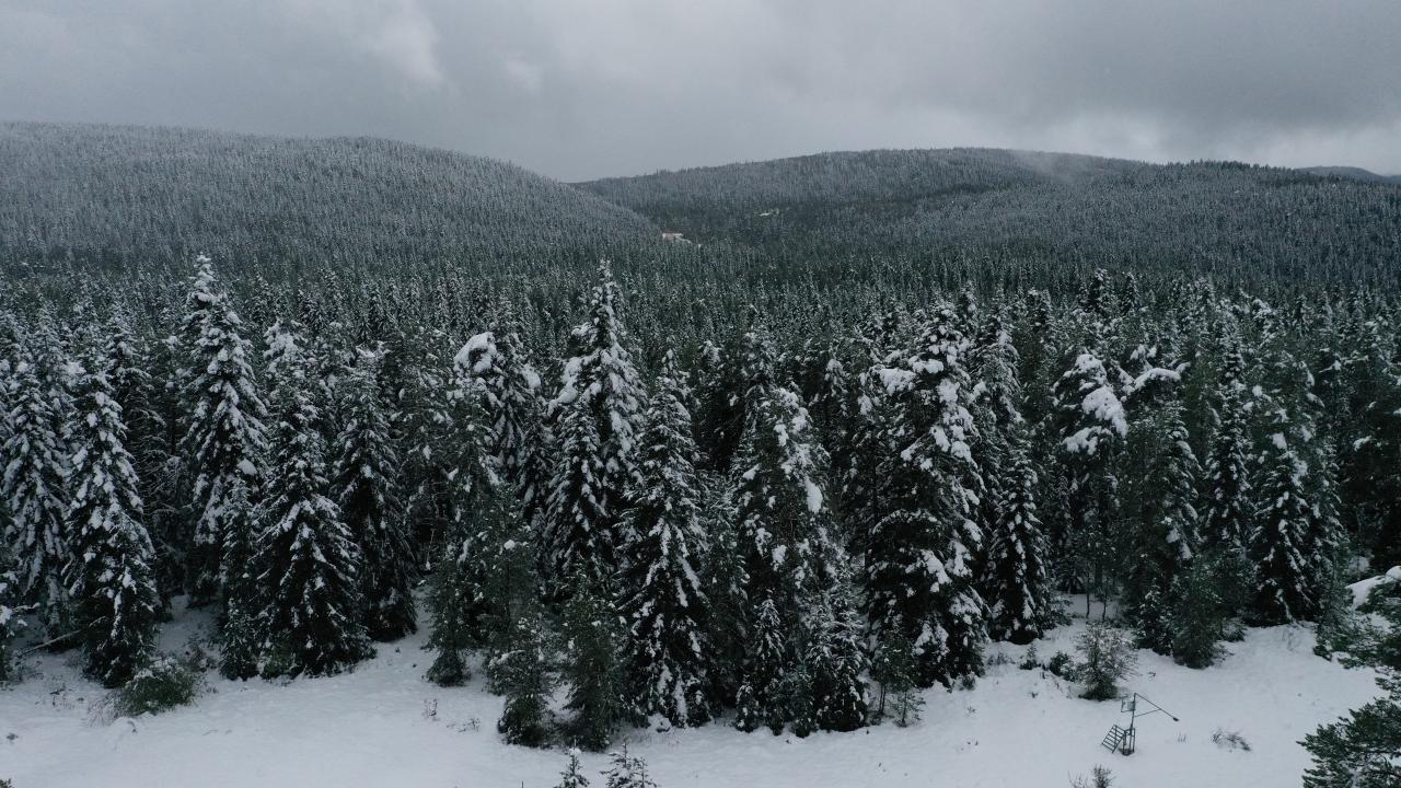 Kastamonu'nun Abana, Bozkurt ve Çatalzeytin ilçelerini il merkezine bağlayan kara yolunun 1450 rakımlı Yaralıgöz Geçidi'nde kar etkili oldu. Karın ardından ormanların beyaza bürünmesi havadan görüntülendi.