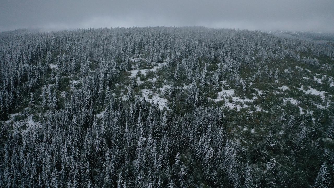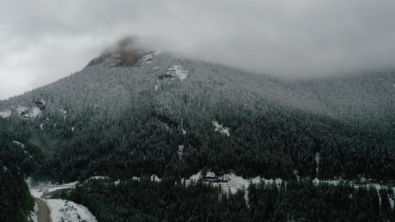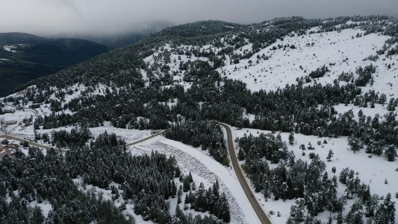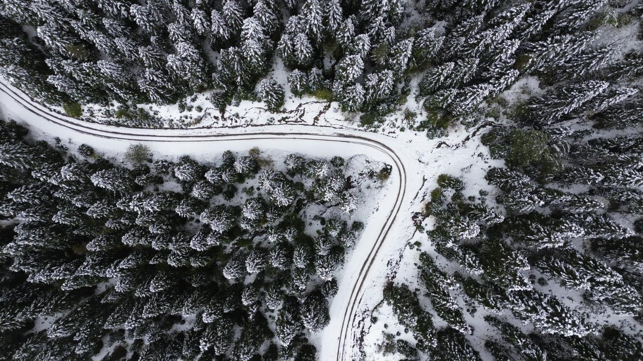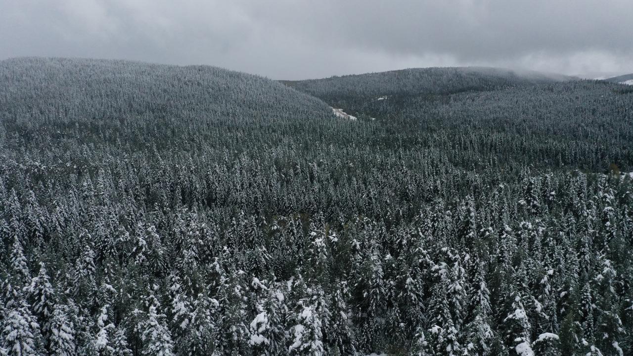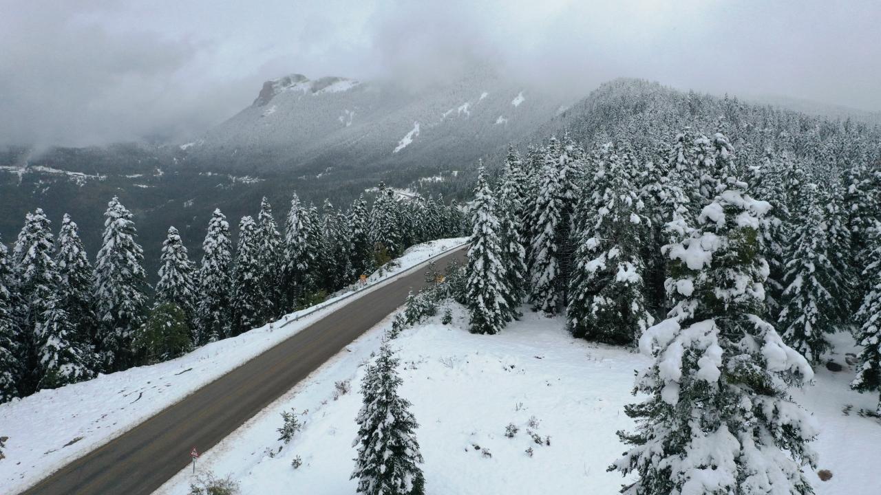 Kastamonu'nun Abana, Bozkurt ve Çatalzeytin ilçelerini il merkezine bağlayan kara yolunun 1450 rakımlı Yaralıgöz Geçidi'nde kar etkili oldu. Karın ardından ormanların beyaza bürünmesi havadan görüntülendi.