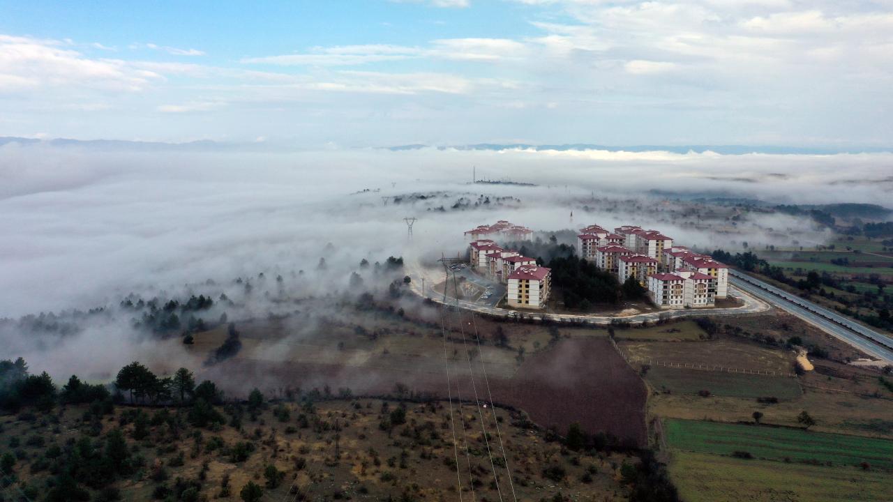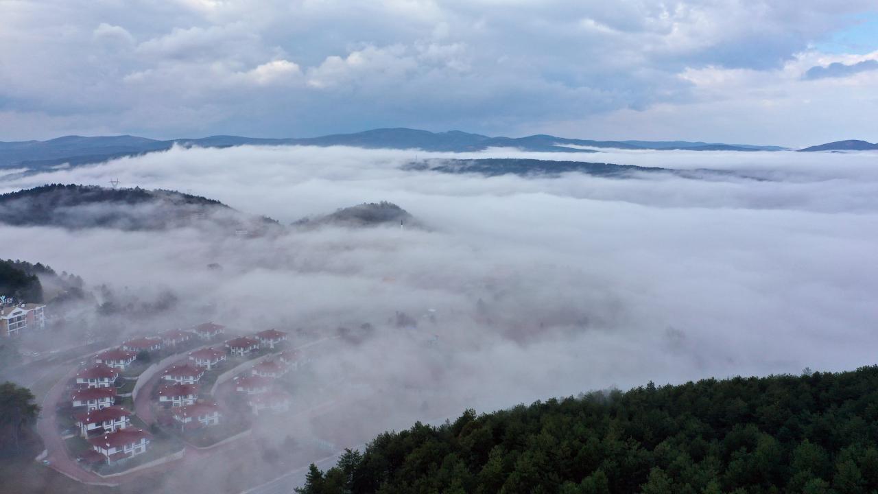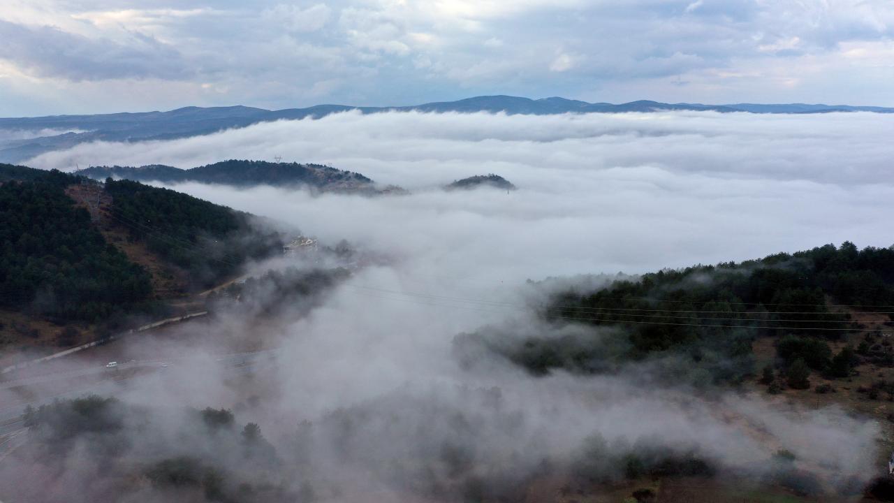 Kastamonu'da D-765 kara yolunun Ilgaz Dağı kesiminde etkili olan sis ulaşımda aksamalara yol açtı. Kent merkezinde de etkili olan sis, drone ile görüntülendi.