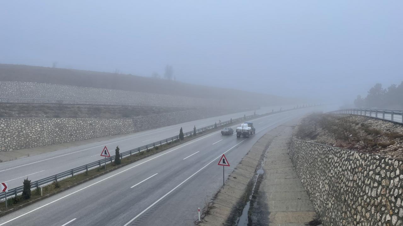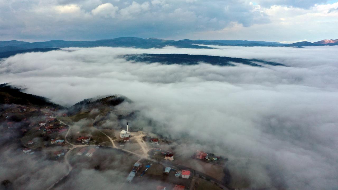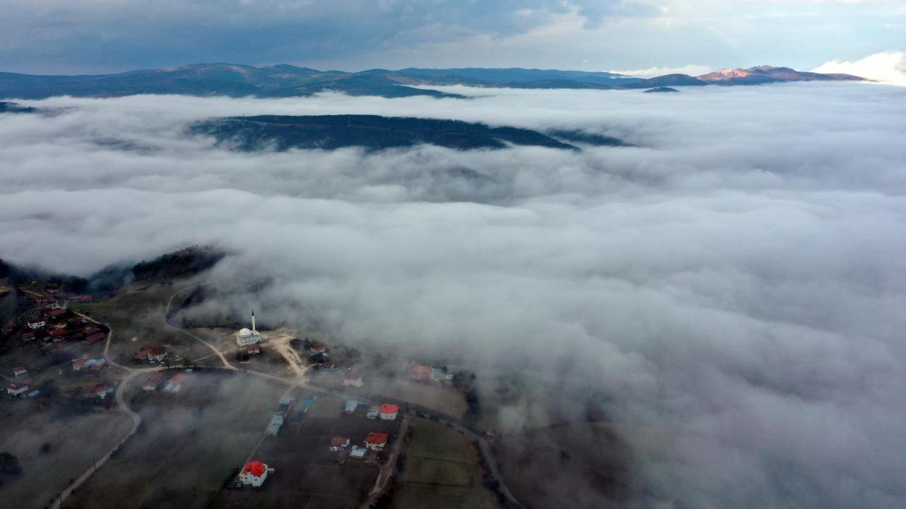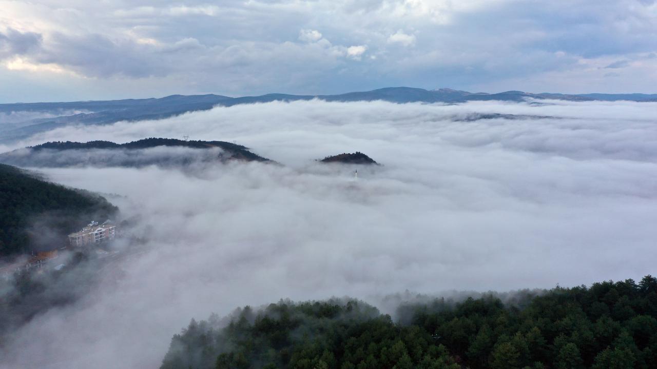 Kastamonu'da D-765 kara yolunun Ilgaz Dağı kesiminde etkili olan sis ulaşımda aksamalara yol açtı. Kent merkezinde de etkili olan sis, drone ile görüntülendi.