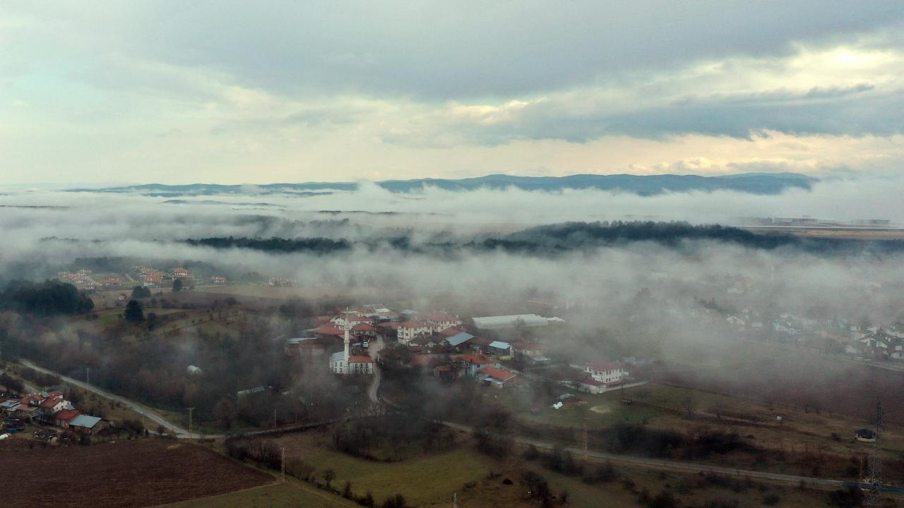 Öte yandan kent merkezinde de etkili olan sis, drone ile görüntülendi.