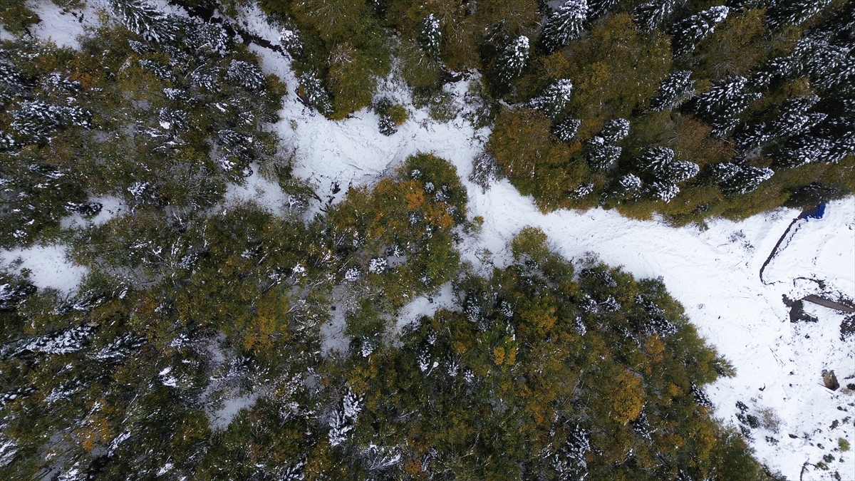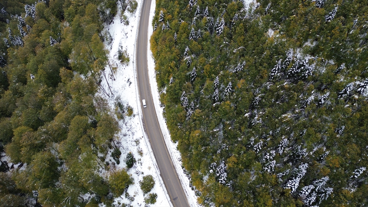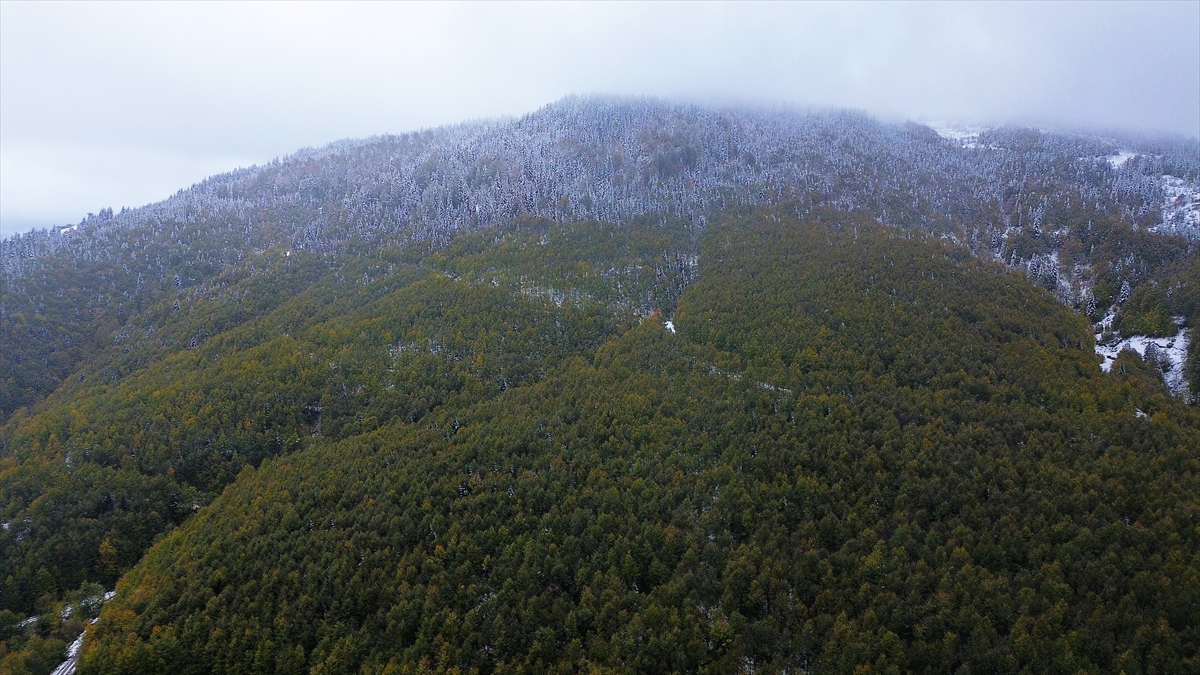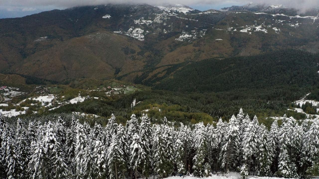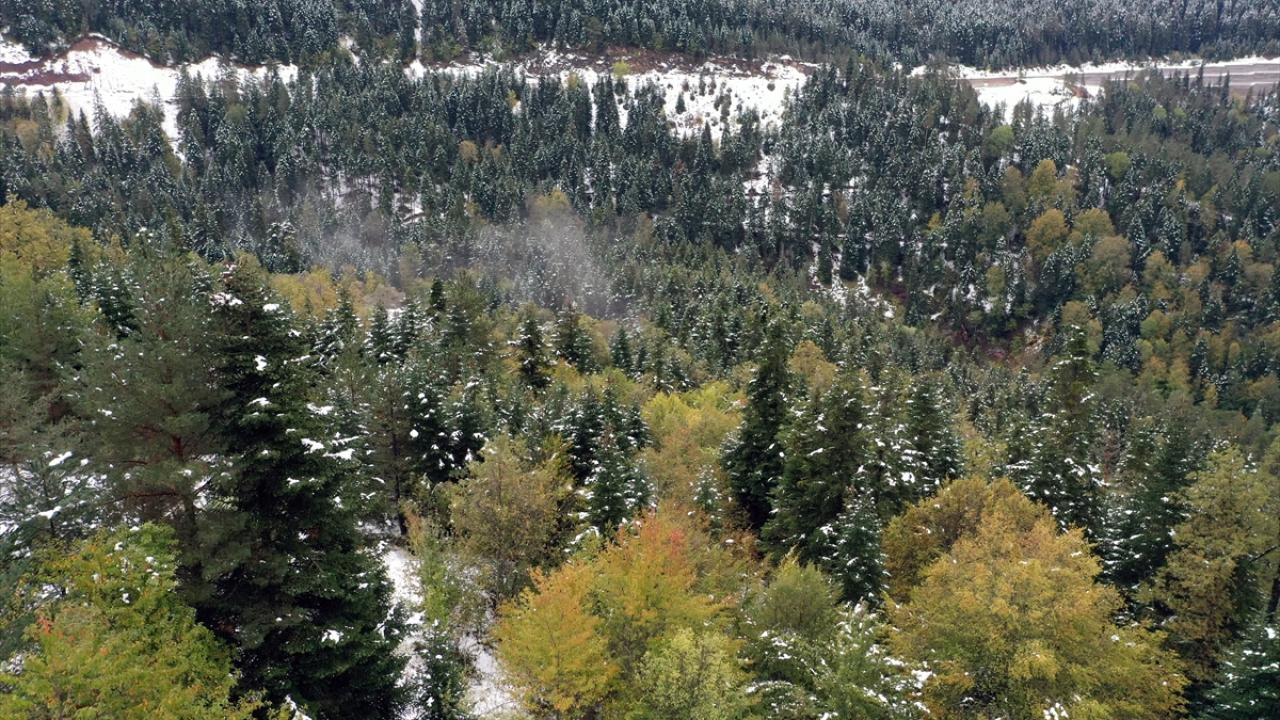 Kastamonu'da ağaçların sonbaharın renklerine bürünmeye başladığı dönemde etkili olan kar yağışı, doğanın farklı güzelliklerini tek karede görme imkanı sundu.