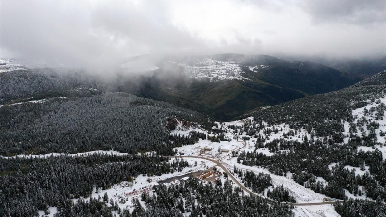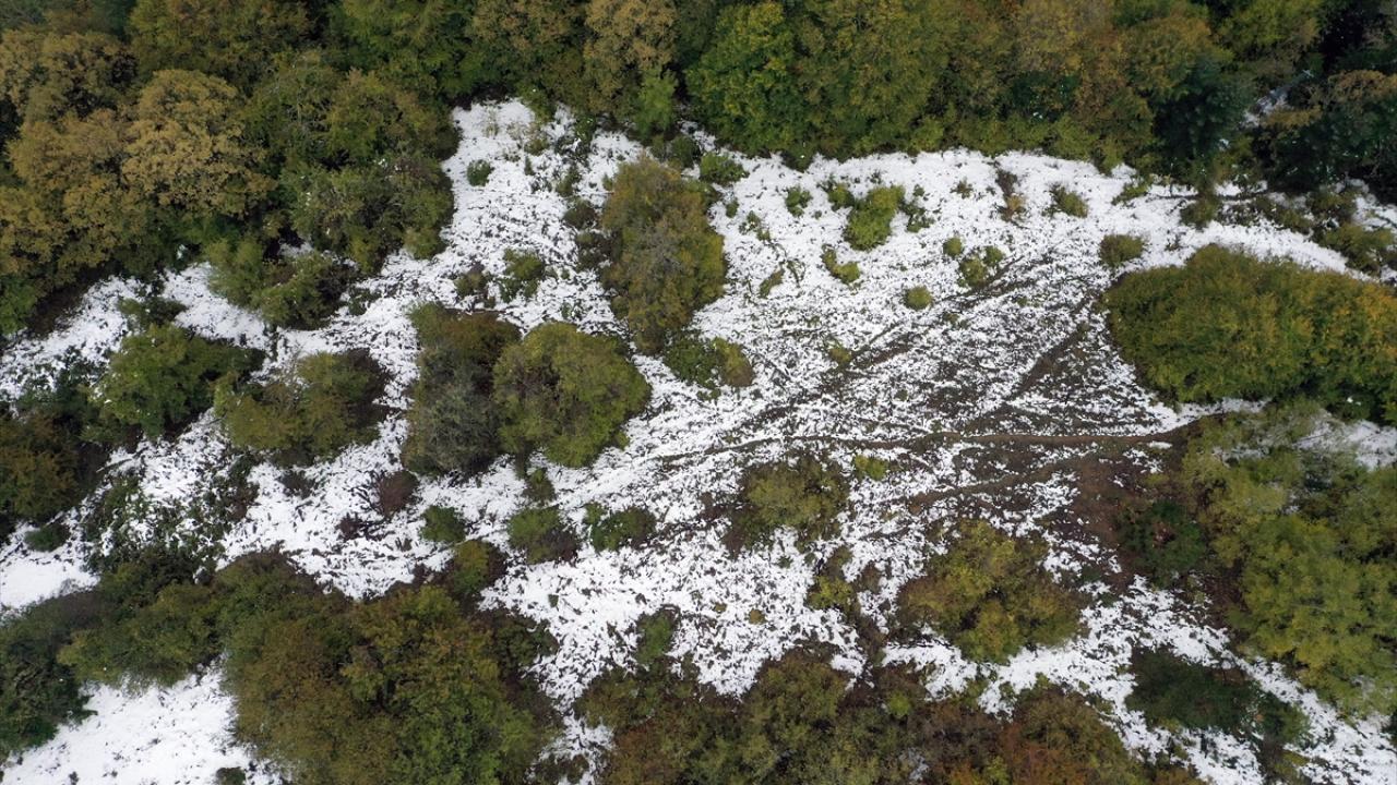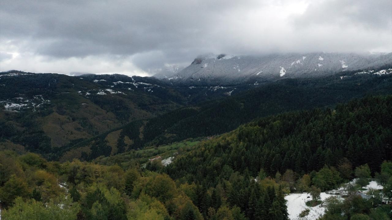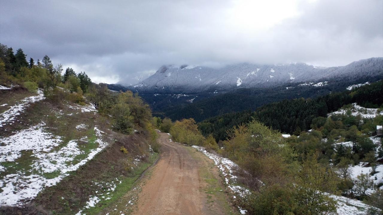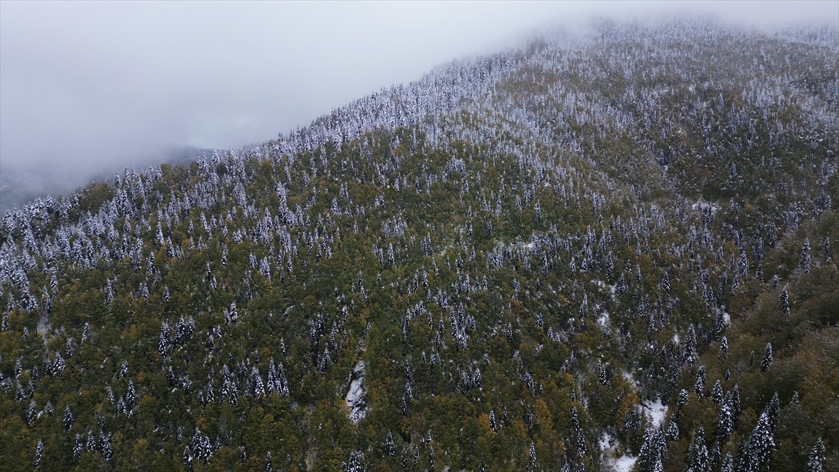 Kastamonu'da ağaçların sonbaharın renklerine bürünmeye başladığı dönemde etkili olan kar yağışı, doğanın farklı güzelliklerini tek karede görme imkanı sundu.