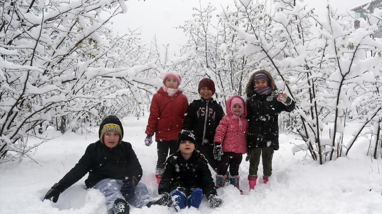Kar nedeniyle eğitim öğretime ara verilen Abana ilçesinde çocuklar karın tadını çıkardı.