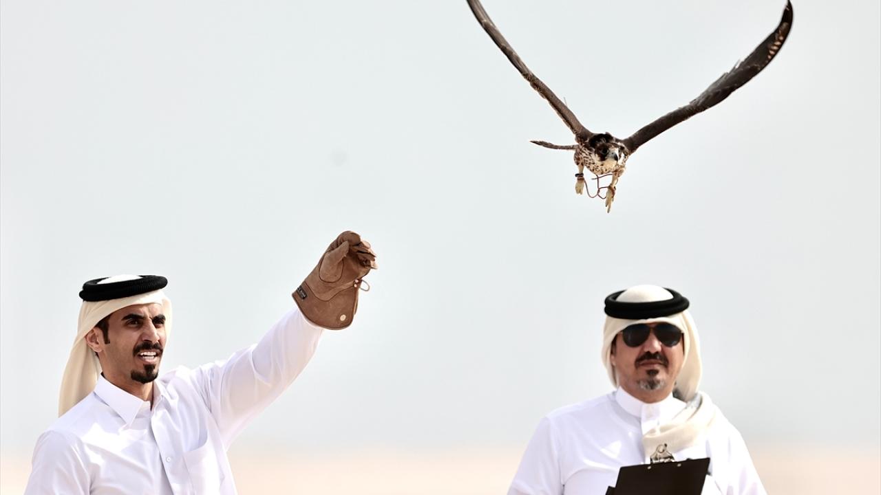 Katar'da düzenlenen festivalde şahinler hünerlerini sergiliyor