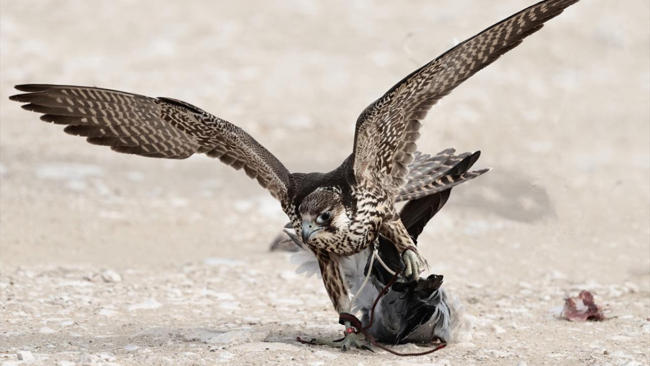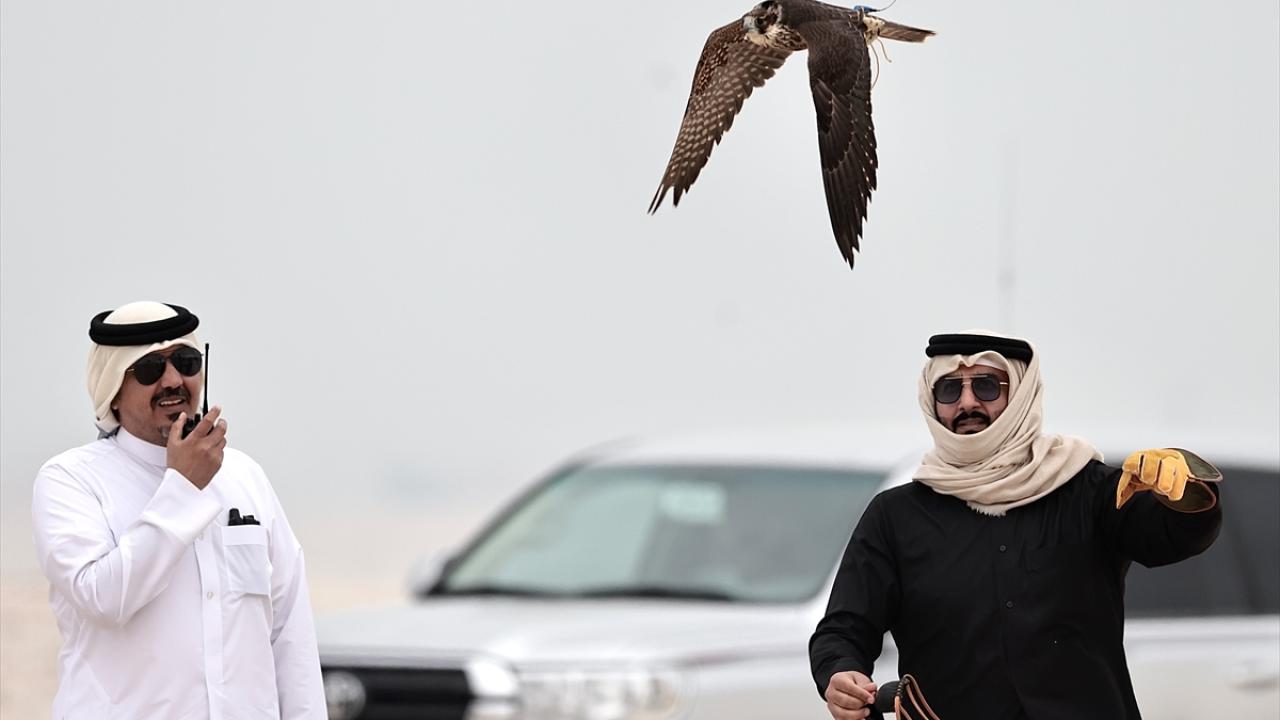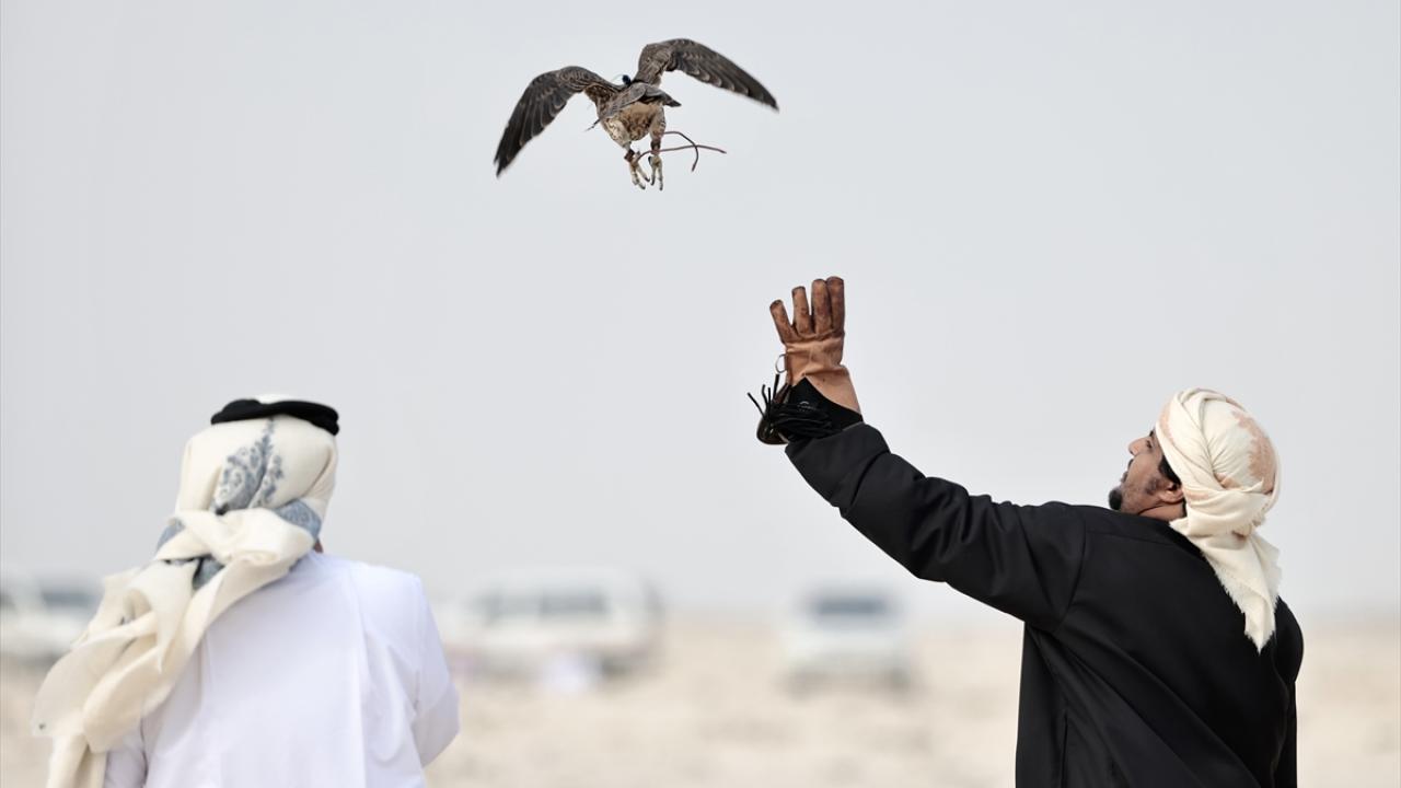 Katar'ın başkenti Doha'da, Körfez ülkelerinin katılımıyla düzenlenen 14. Geleneksel Şahin ve Avcılık Festivali'nde yarışan şahinler avcılık yeteneklerini ortaya koyuyor.