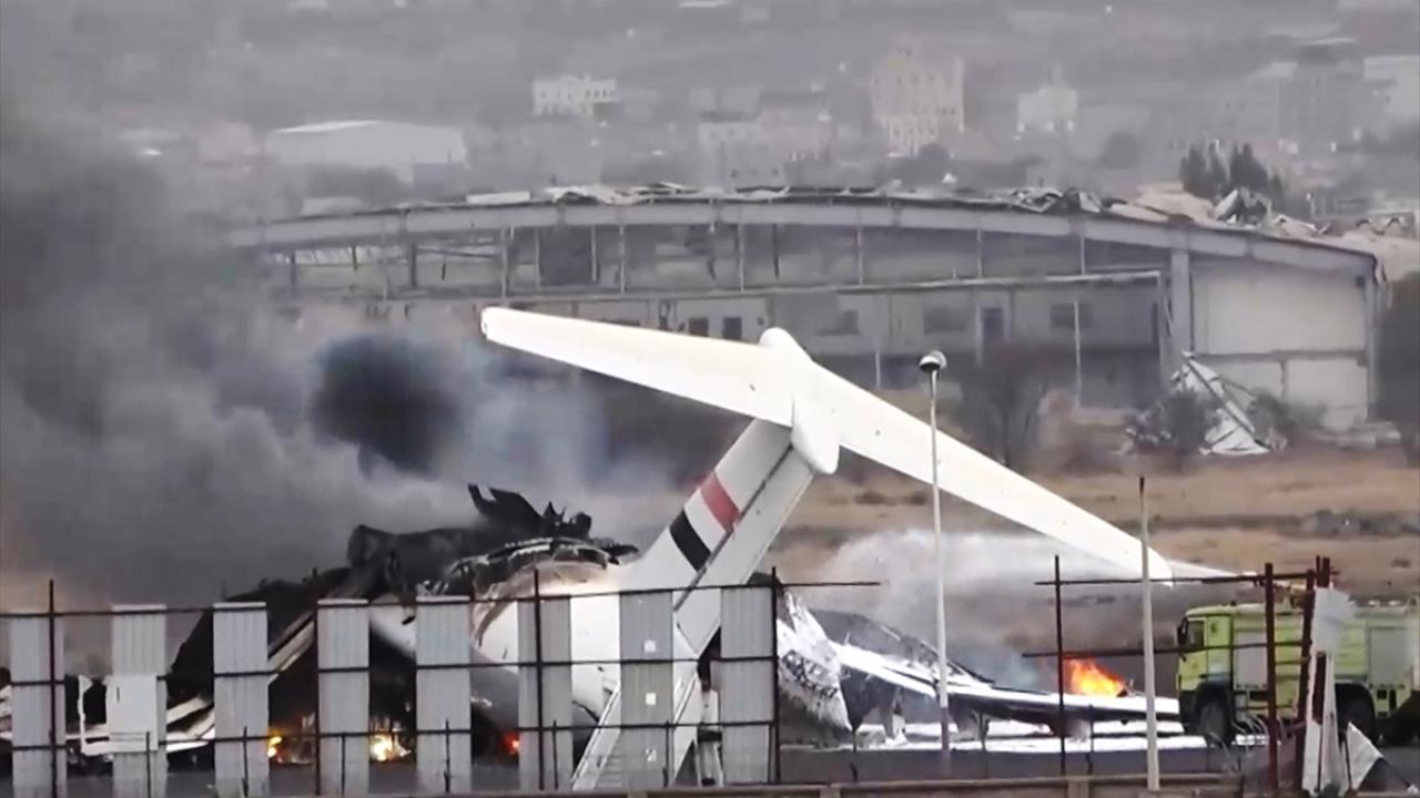 İşgalci İsrail ordusu, Yemen'in başkenti Sana'daki Sana Havalimanı'na hava saldırısı düzenledi. Saldırı sonucu havalimanındaki uçaklarda ağır hasar oluştu.