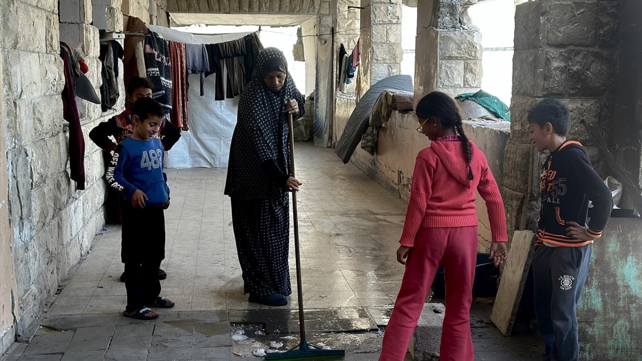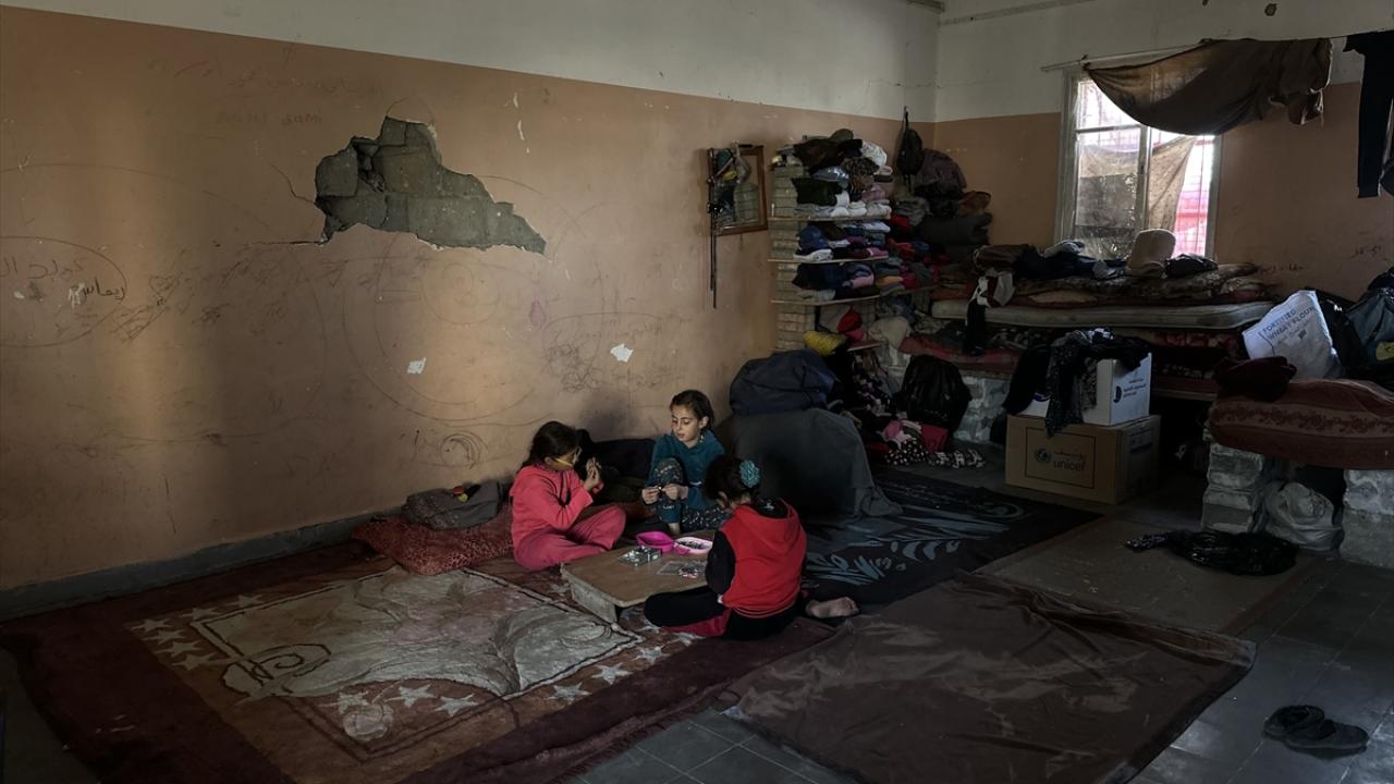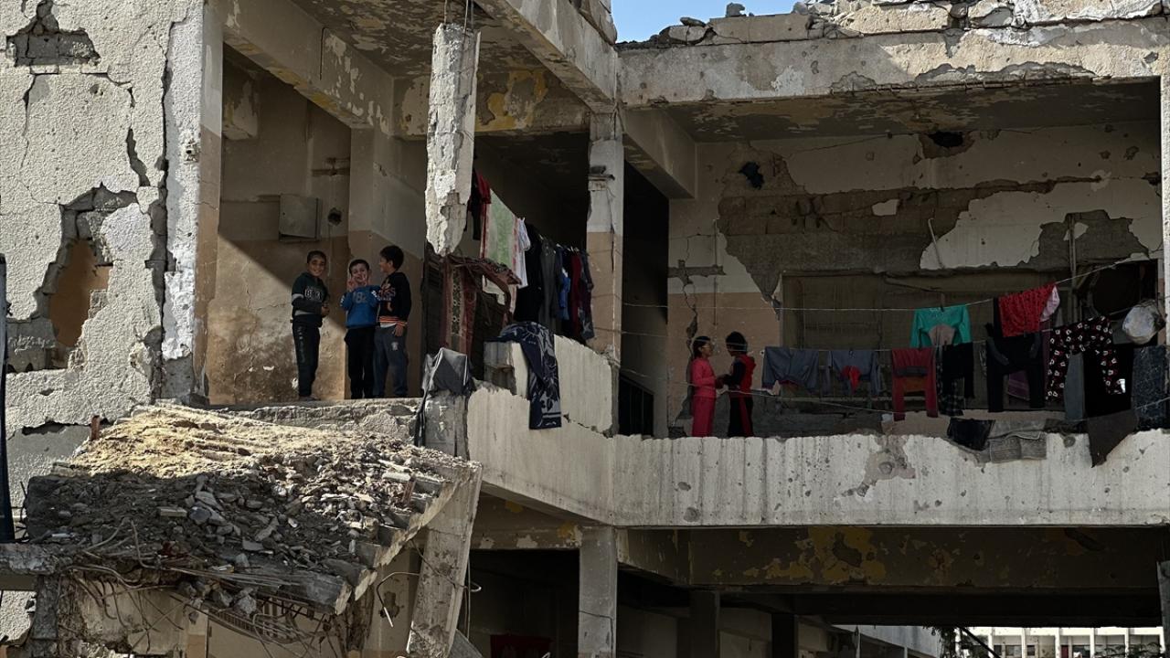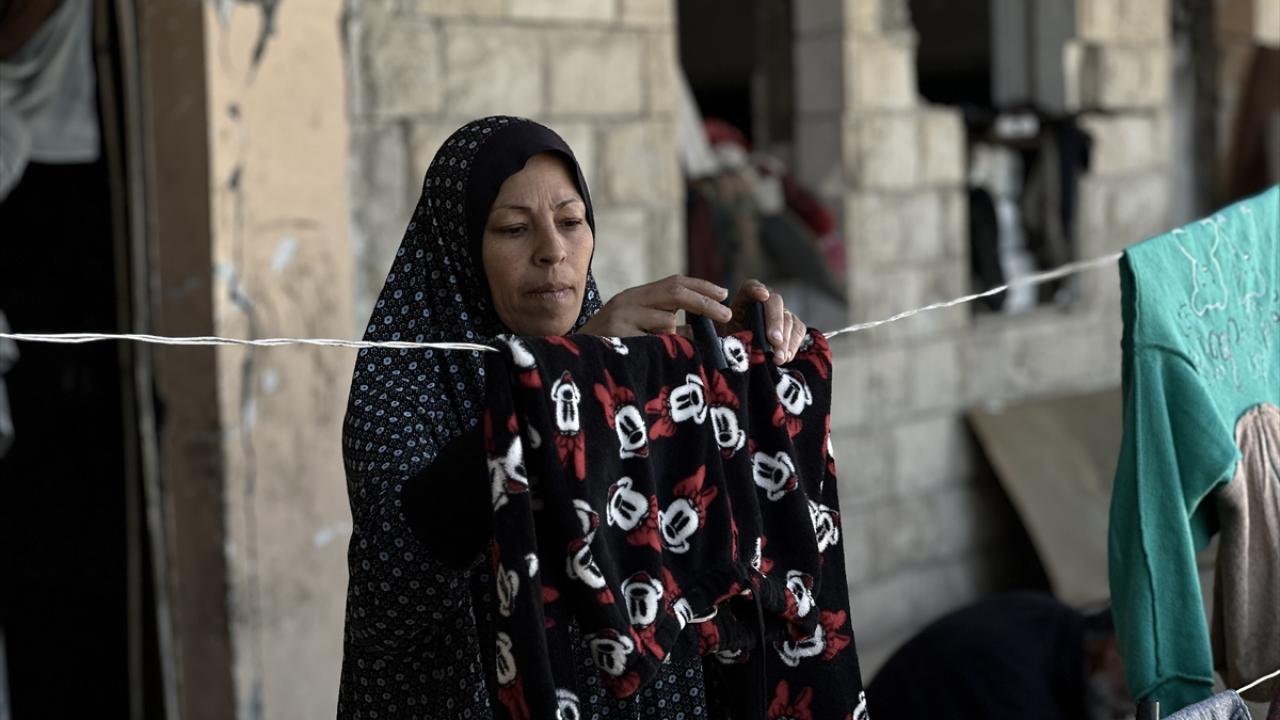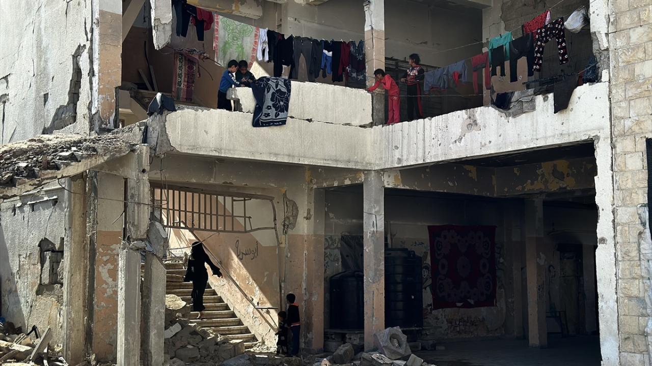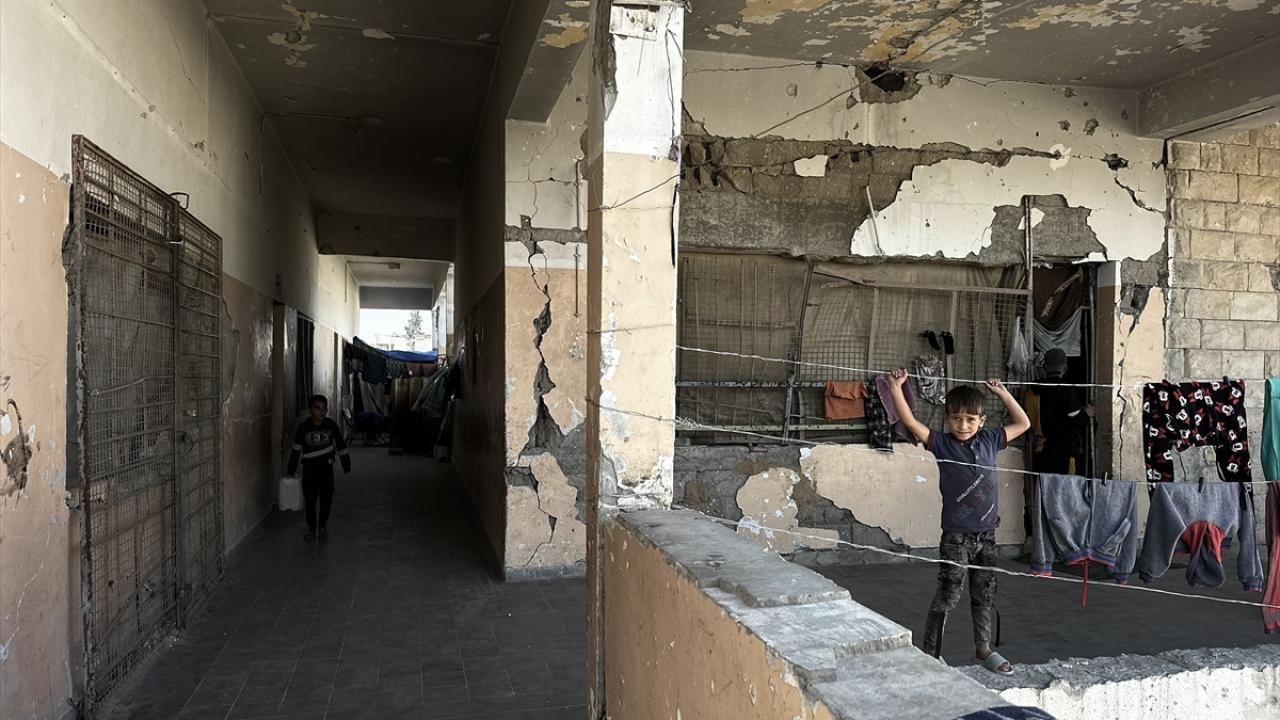 Katil İsrail'in düzenlediği saldırılarda evleri yıkılan Filistinli aileler, Gazze Şeridi'nin güneyinde yer alan Han Yunus kentindeki Hayfa Okulu'na sığındı. İsrail saldırısında büyük hasar gören ve bir kısmı yıkılan okulda yaşamaya çalışan aileler, zor koşullar altında, soğuk hava ve devam eden saldırılar karşısında hayatta kalma mücadelesi veriyor.