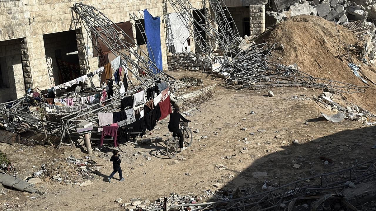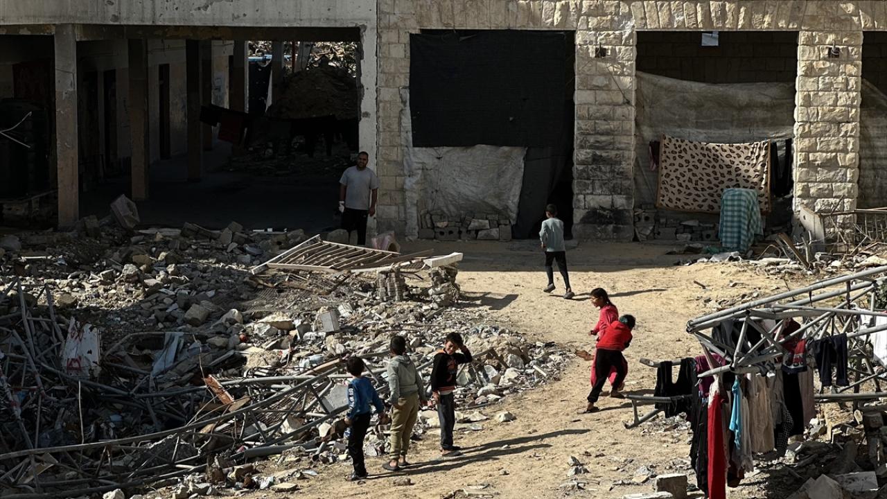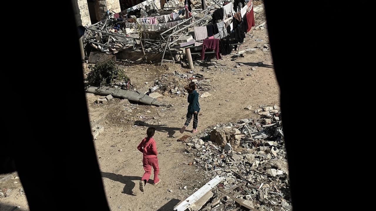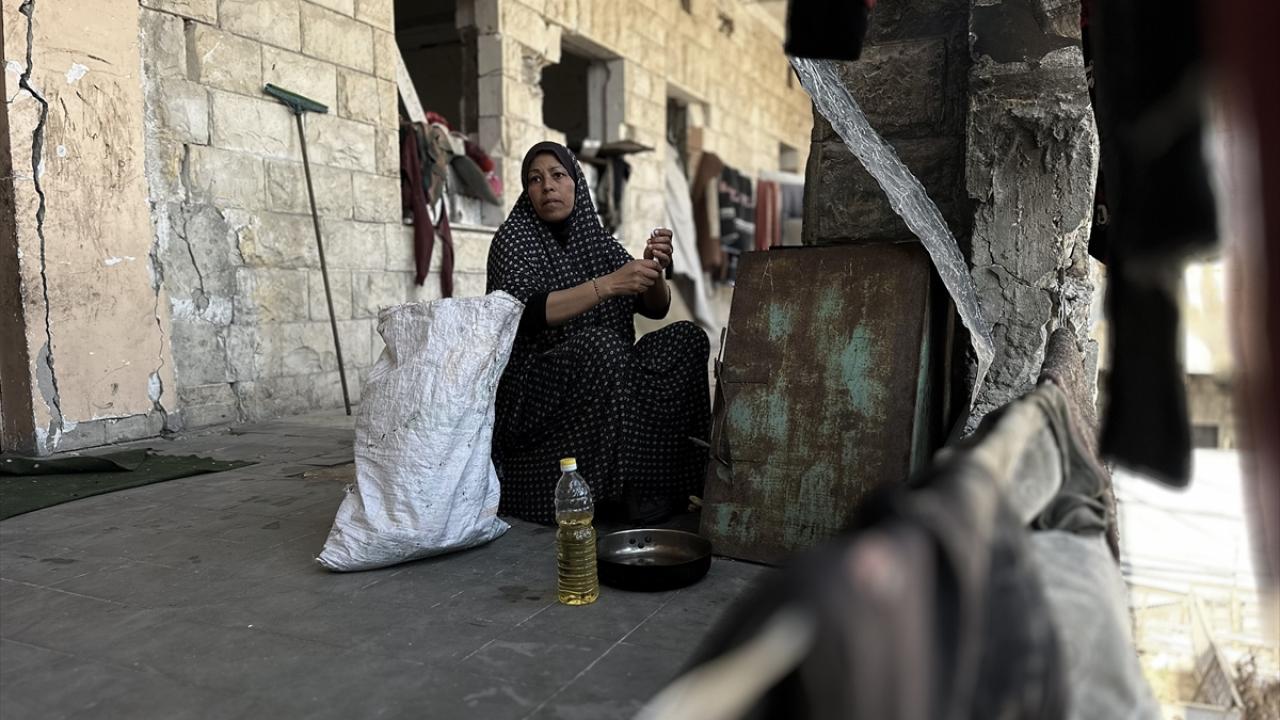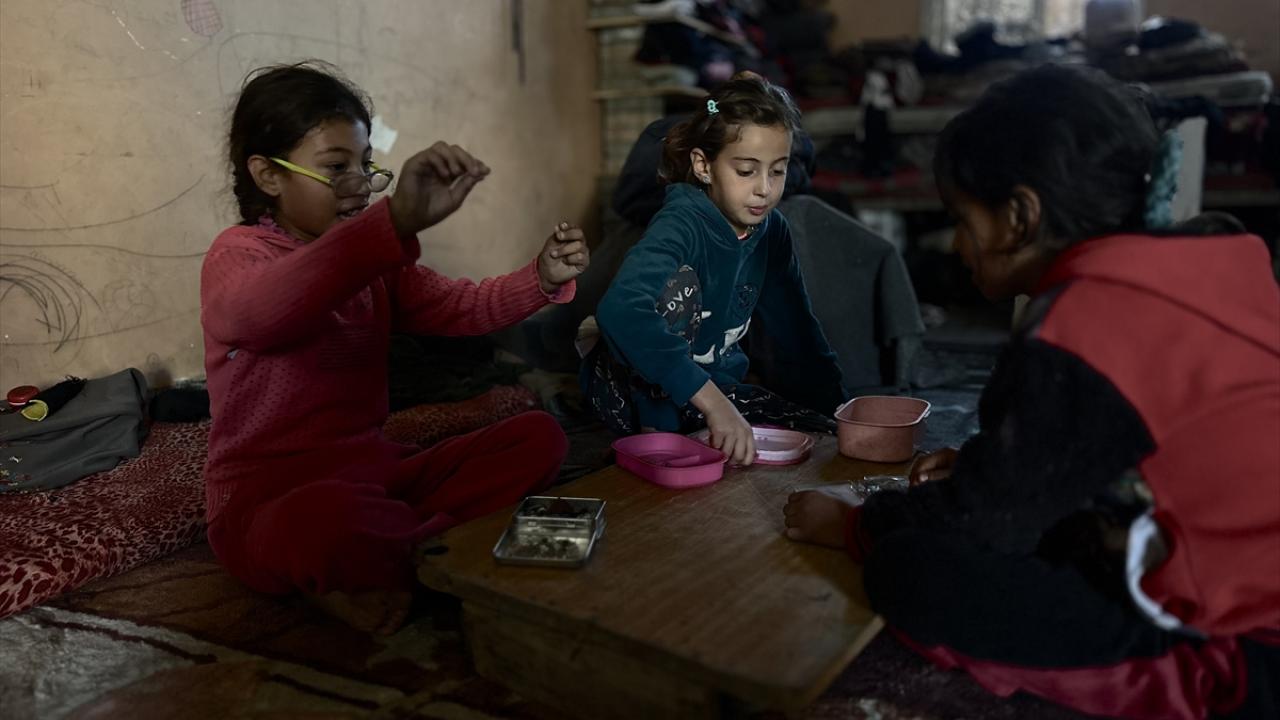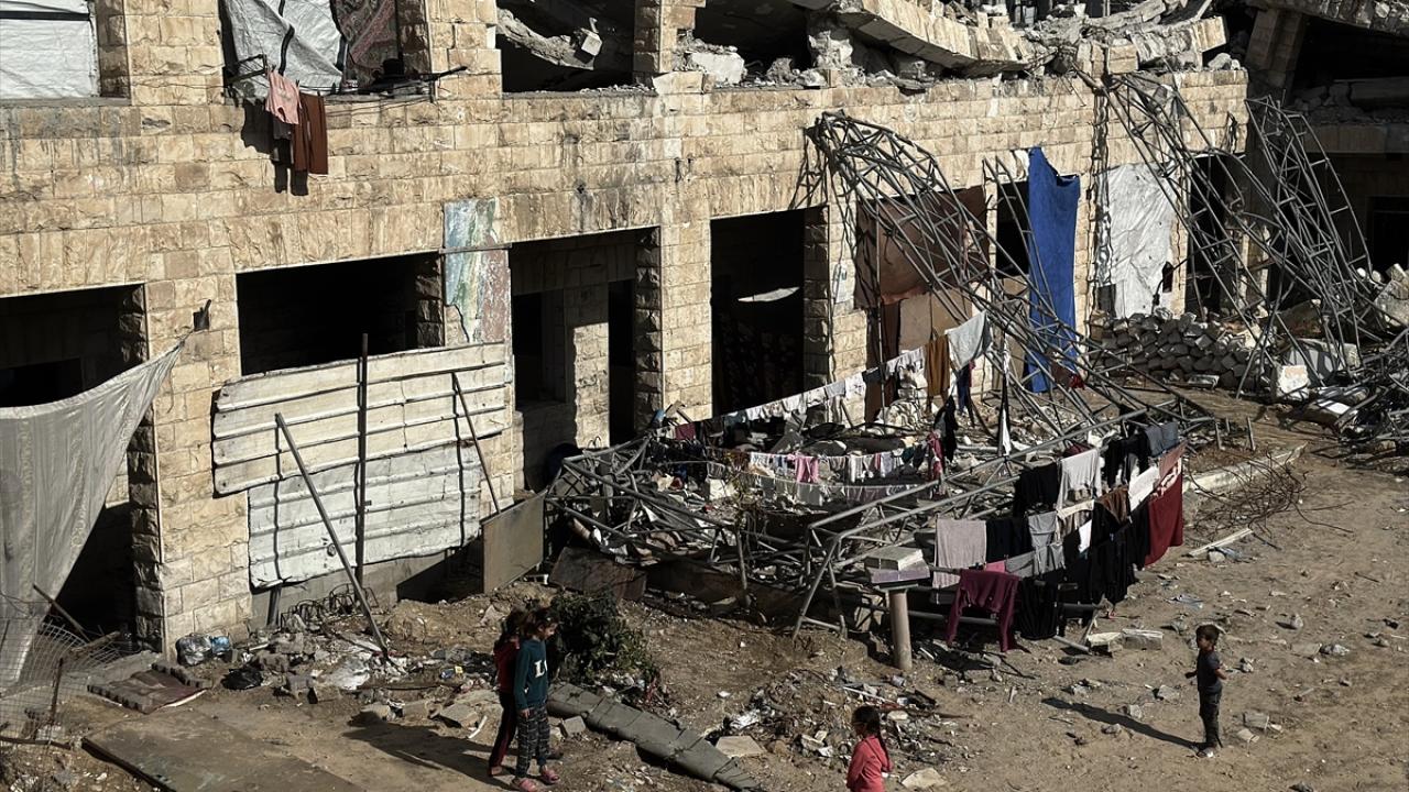 Katil İsrail'in düzenlediği saldırılarda evleri yıkılan Filistinli aileler, Gazze Şeridi'nin güneyinde yer alan Han Yunus kentindeki Hayfa Okulu'na sığındı. İsrail saldırısında büyük hasar gören ve bir kısmı yıkılan okulda yaşamaya çalışan aileler, zor koşullar altında, soğuk hava ve devam eden saldırılar karşısında hayatta kalma mücadelesi veriyor.