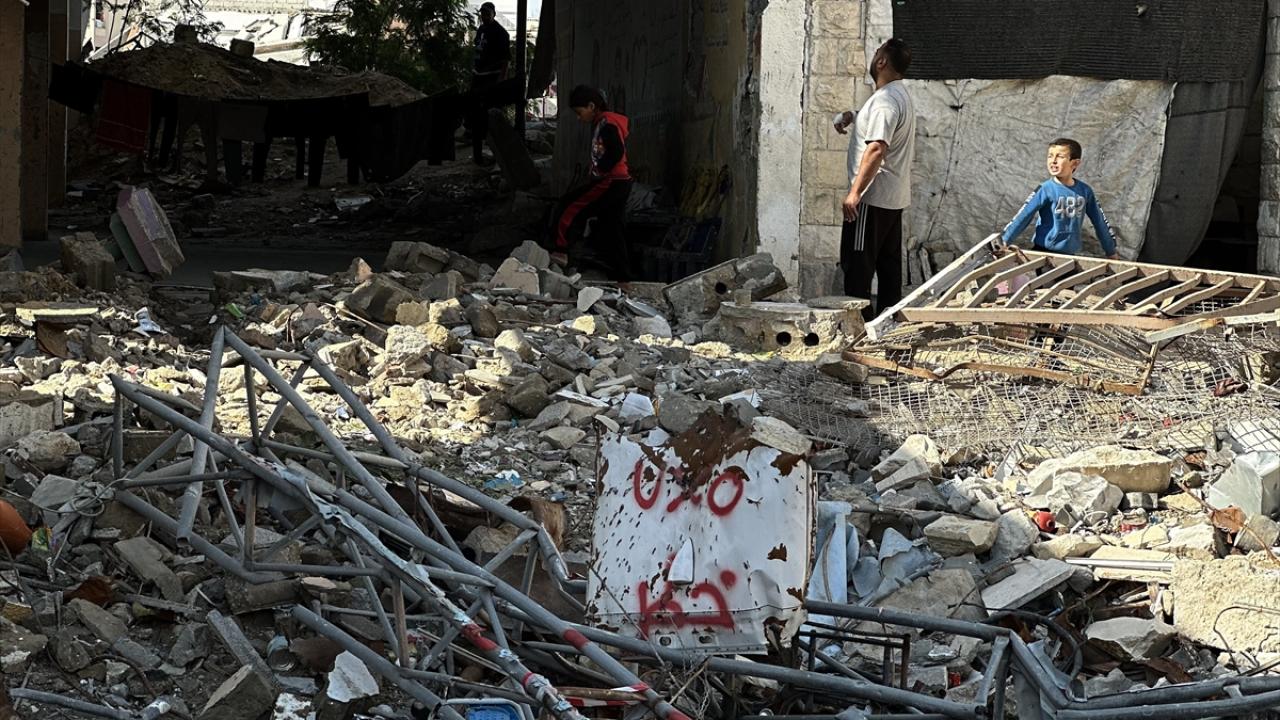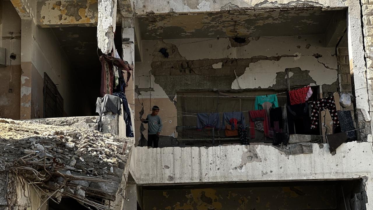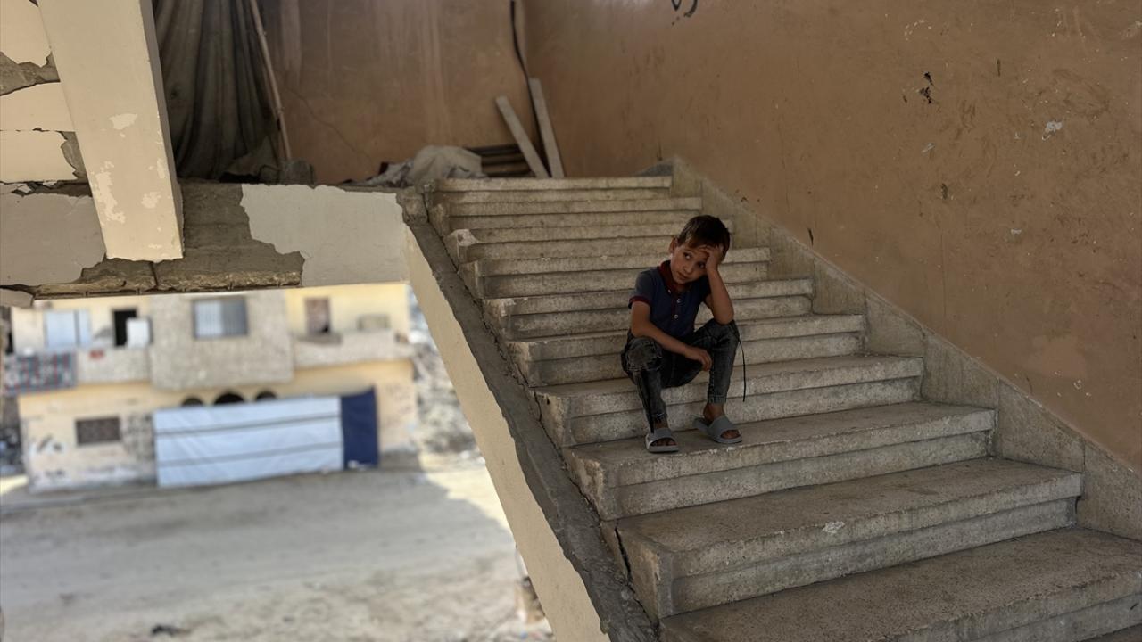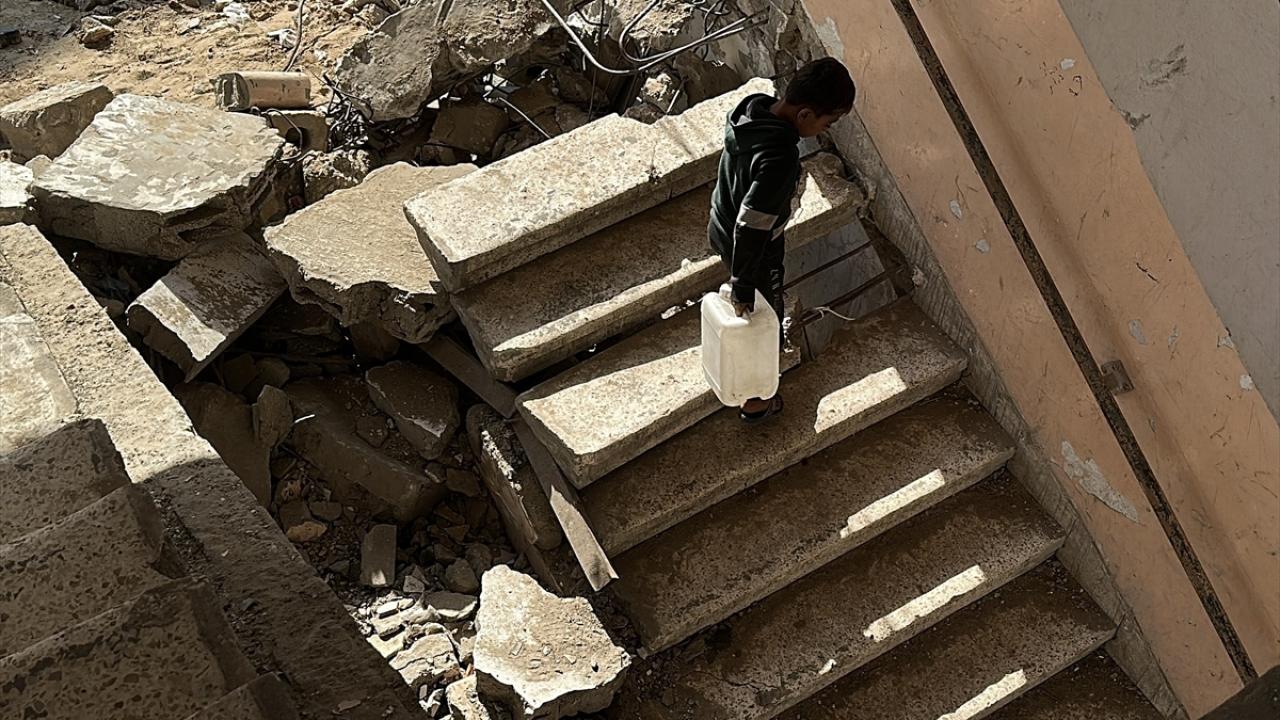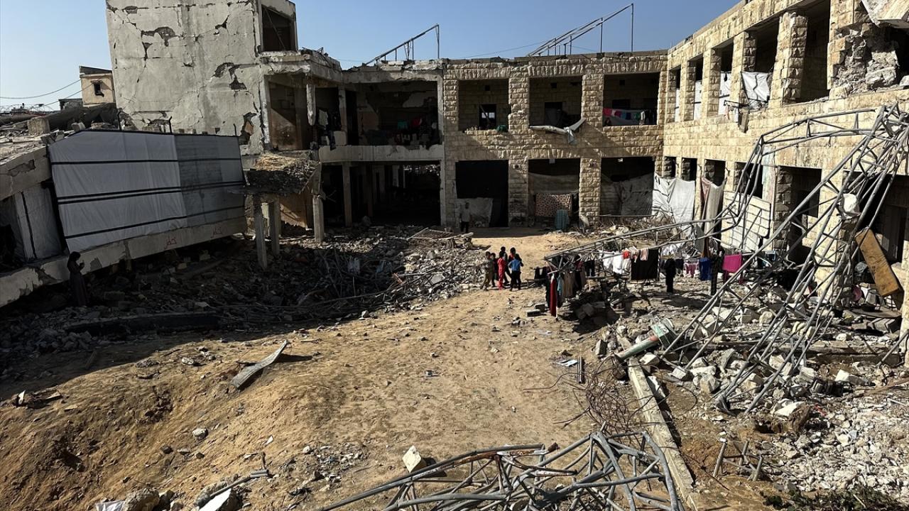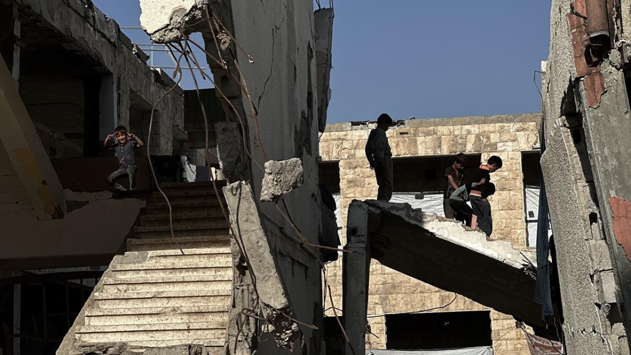 Katil İsrail'in düzenlediği saldırılarda evleri yıkılan Filistinli aileler, Gazze Şeridi'nin güneyinde yer alan Han Yunus kentindeki Hayfa Okulu'na sığındı. İsrail saldırısında büyük hasar gören ve bir kısmı yıkılan okulda yaşamaya çalışan aileler, zor koşullar altında, soğuk hava ve devam eden saldırılar karşısında hayatta kalma mücadelesi veriyor.