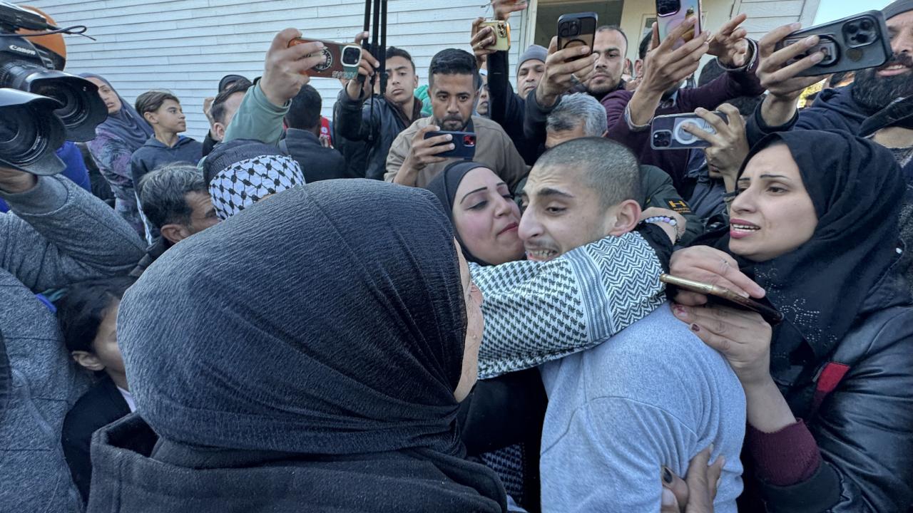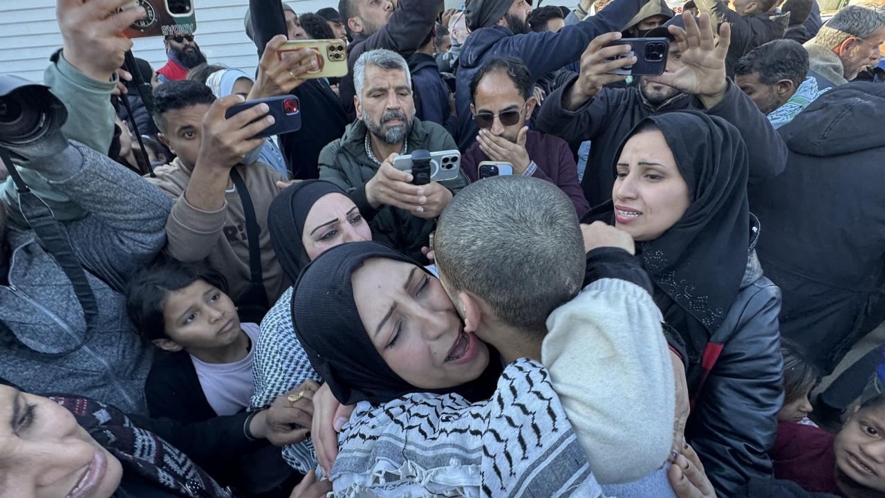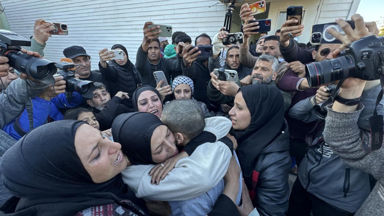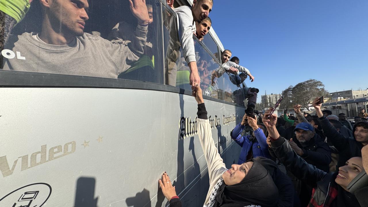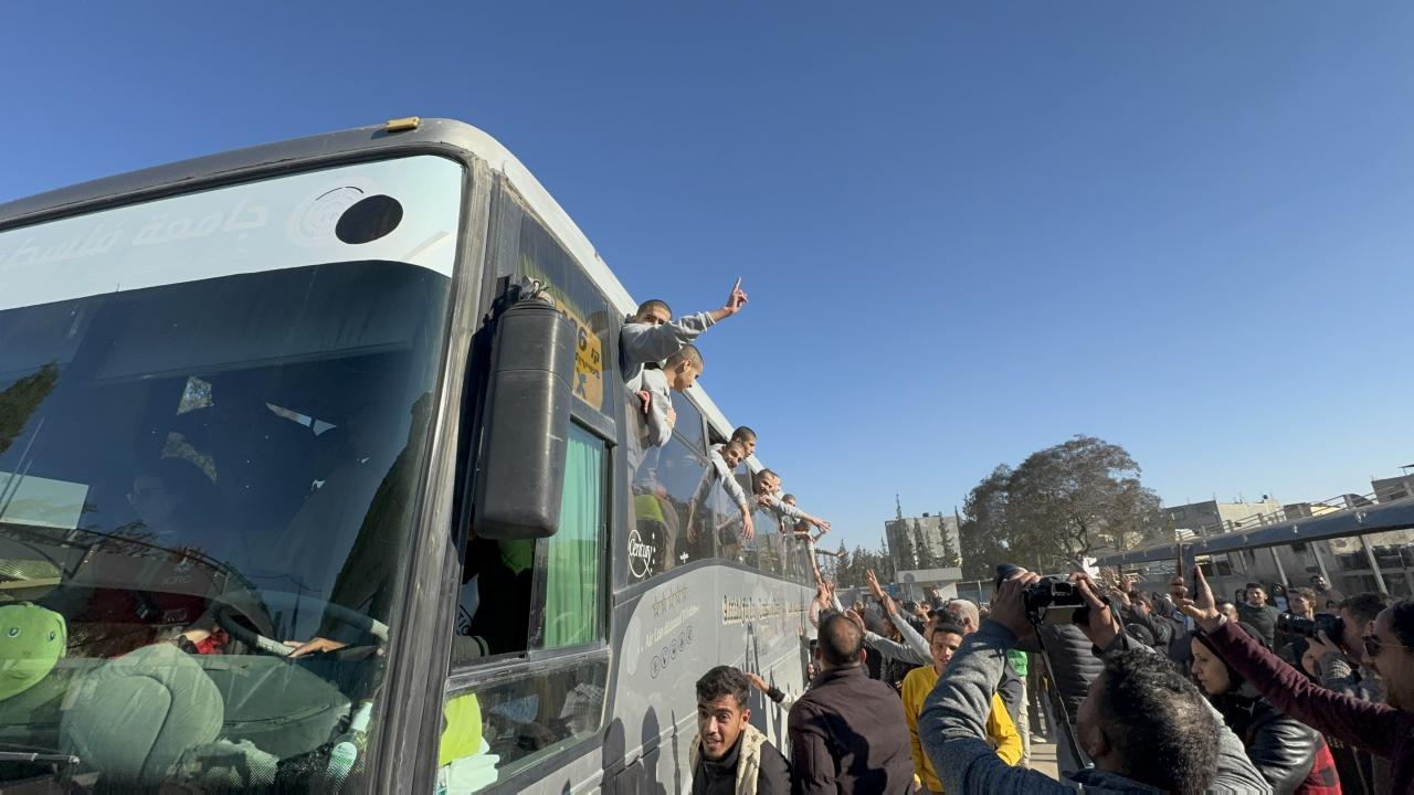 Hamas ile İsrail arasındaki Gazze'de ateşkes ve esir takası anlaşmasının yedinci turu kapsamında İsrail'in gecikmeli olarak serbest bıraktığı 46 Filistinli esir Gazze'ye ulaştı.