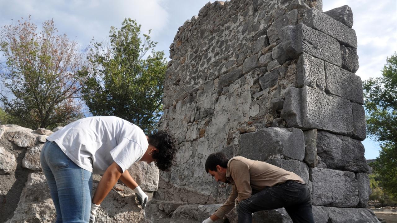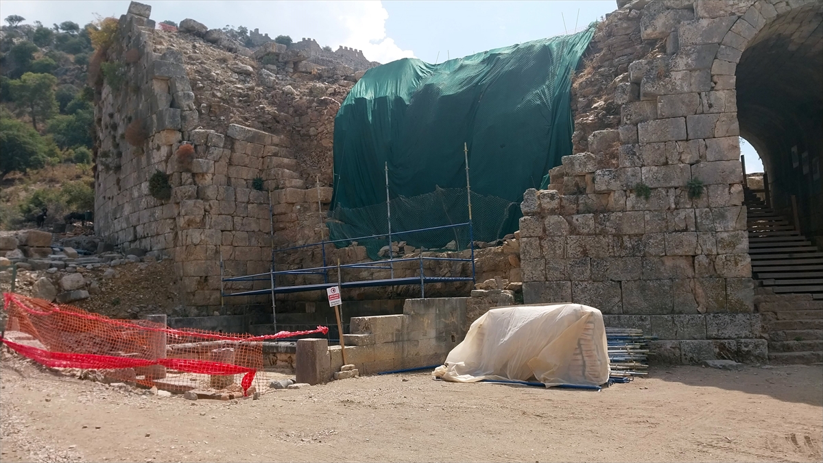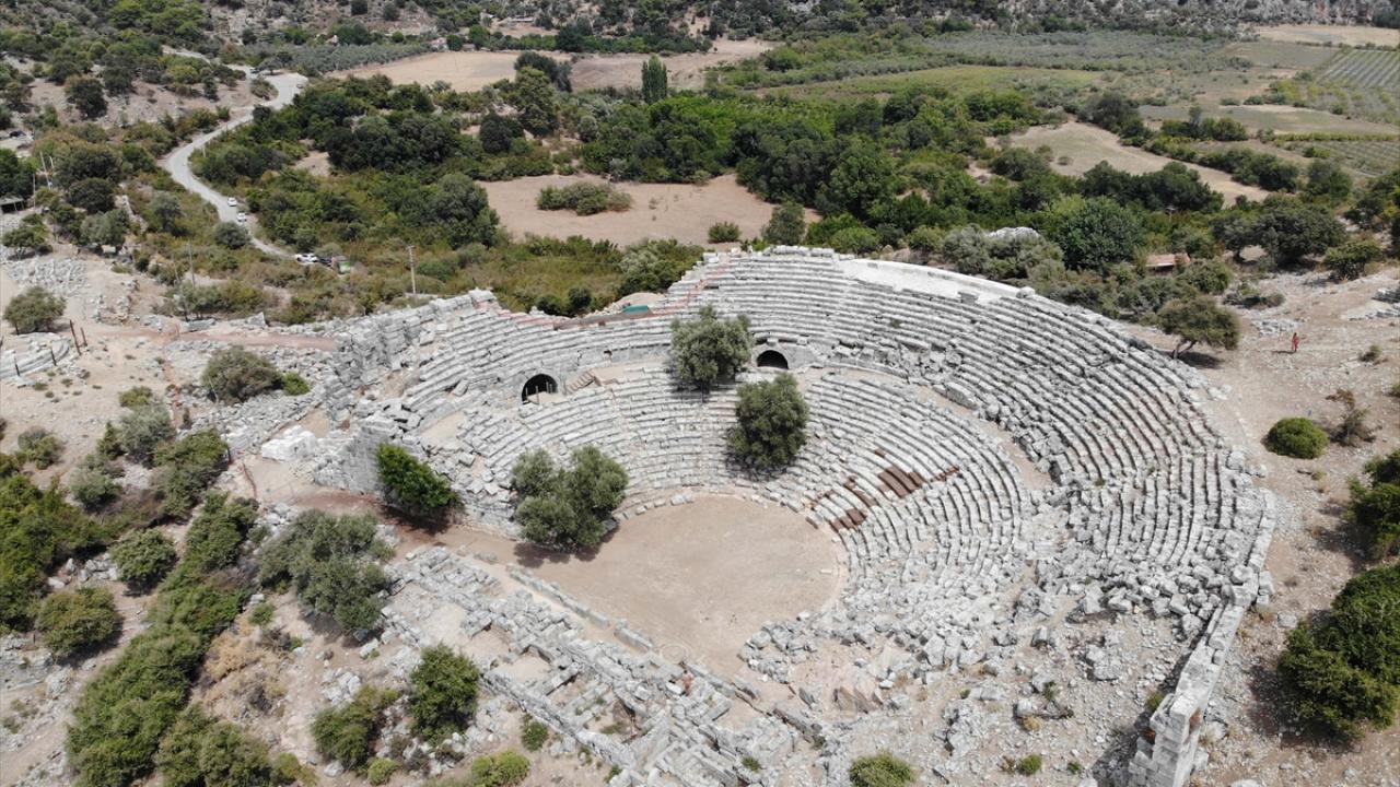 3 bin yıllık antik kentteki önemli alanlardan biri olan tiyatroda Muğla Valiliği desteğiyle konservasyon ve restorasyon çalışmaları yürüttüklerini belirten Çörtük, "Tiyatrodaki restorasyon çalışması iki etaptan oluşmakta. Birincisi anelema duvarı olarak ifade ettiğimiz çevre destek duvarı, o alan tamamlanmış vaziyette. Diğer kısım ise tiyatro çeşmesinin yer aldığı tonozlu bölüm. Orada da arkeolojik çalışma, kazı çalışmaları tamamlandı. Bölgeye çeşitli etkinliklerin yapılabileceği güzel bir alan kazandırma hedefindeyiz." dedi.