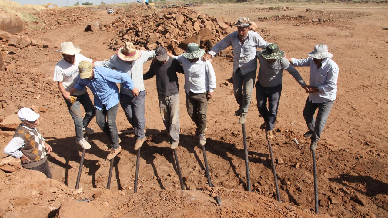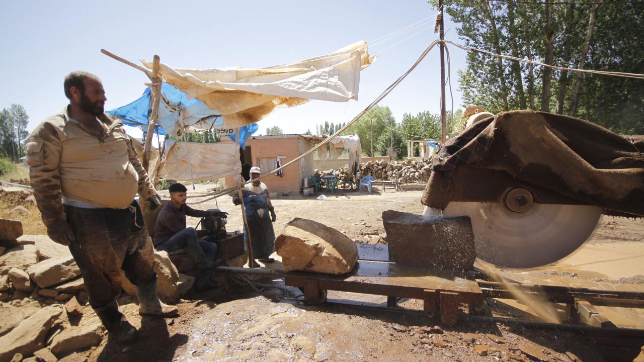 İlçede 22 yıldır taş çıkararak geçimlerini sağladığını belirten taş işçilerinden Seyfettin Nacaroğlu, “22 yıldır bu işte çalışıyorum. Sabah gün ağarınca geliyoruz. Kahvaltımızı yaptıktan sonra taş ocağımızda temizlik yapıyoruz. Daha sonra karasalar yardımıyla kayaları kütleler halinde çıkararak parçalıyoruz. Günlük ortalama 30 ile 40 adet arasında kütle halinde taş çıkartıyoruz. Daha sonra kesim için taş atölyeleri bu taşları bizden alıyor. Geçimimizi bu şekilde sağlıyoruz. Bilek gücüyle çalışıyoruz. Bu sıralar havada çok sıcak oldu. Bu sıcağa rağmen bilek gücüyle çalışıyoruz. Yine de hamd olsun işimiz iyidir” dedi.