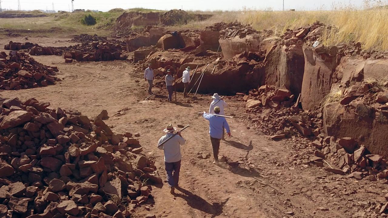 Volkanik kaya kütlelerini balyoz, manivela ve büyük mıhlarla parçalayarak yapı malzemesi oluşturan işçiler, zorlu ekmek mücadelesine sabahın erken saatlerinde başlıyor.
