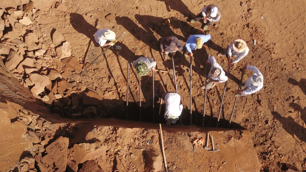Karasa dedikleri uzun demirleri çiviyle iz açılan alana yerleştiren ustalar, daha sonra demirlerin üzerinde zıplayarak kaya kütlesinin yerinden oynamasını sağlıyor.