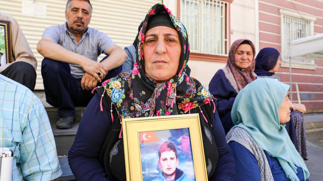 Ellerinde çocuklarının fotoğrafıyla bekleyişini sürdüren annelerden Bedriye Uslu, oğlu Mahmut`a kavuşma ümidiyle her sabah HDP il binası önüne gelerek oturma eylemi yaptığını söyledi.
