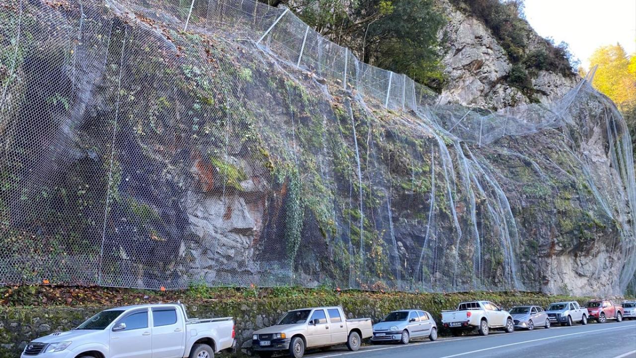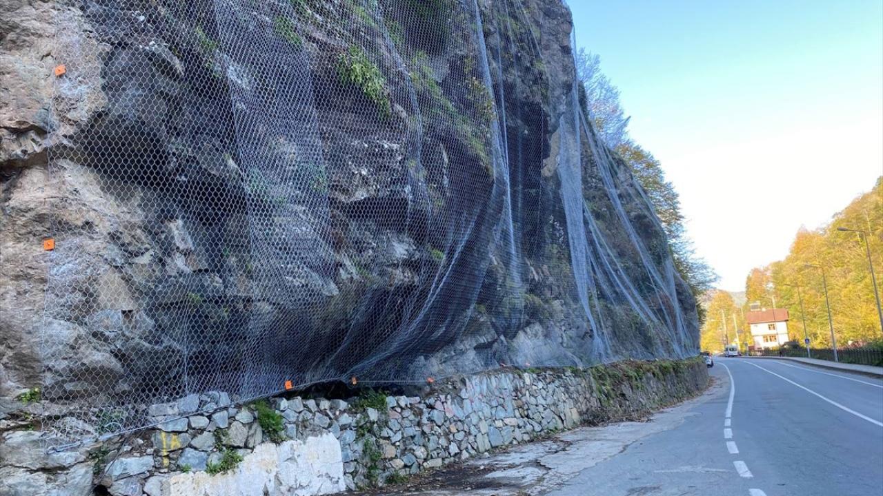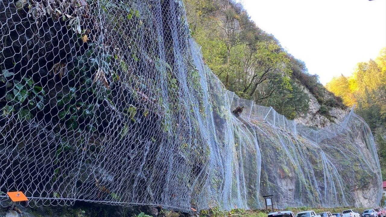 Profesyonel dağcılardan oluşan ekip, halatlar yardımıyla tırmandıkları yamaçlarda riskli kayaları düşürdü, ardından da bu bölgeleri çelik ağla kapladı.