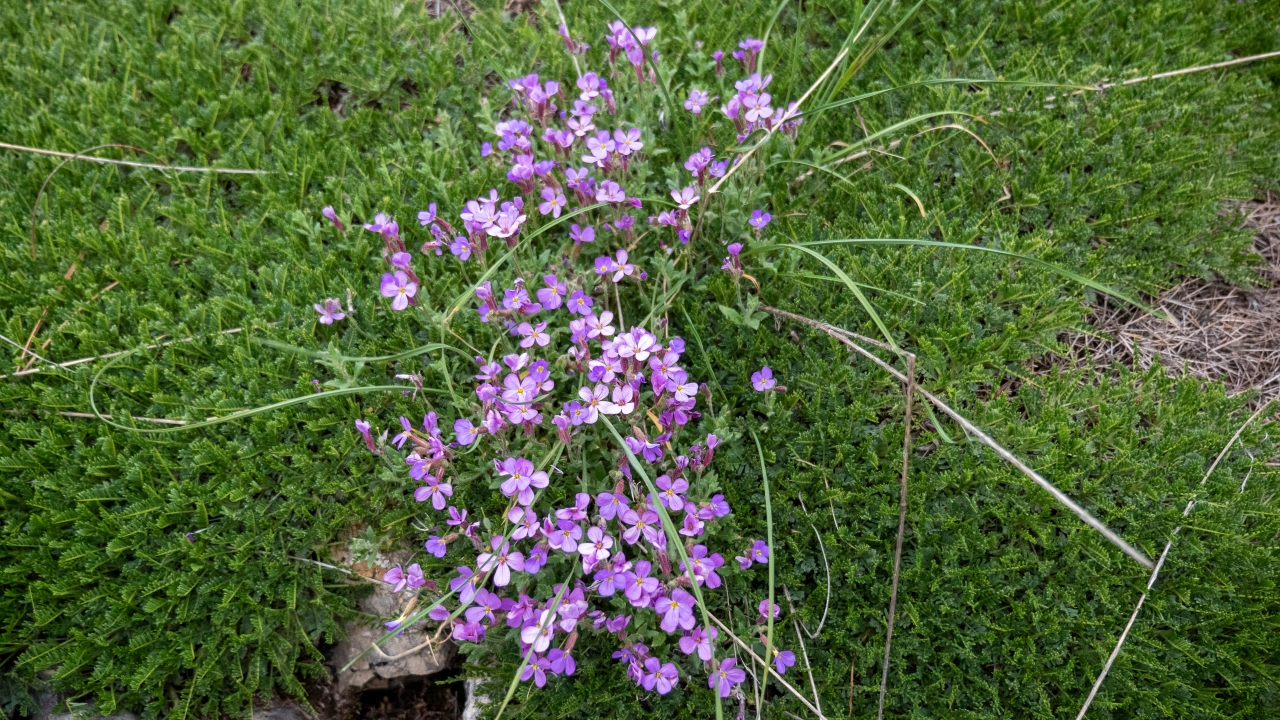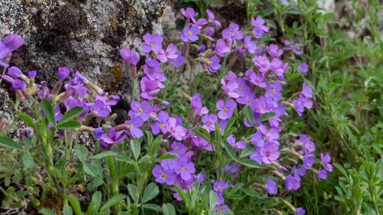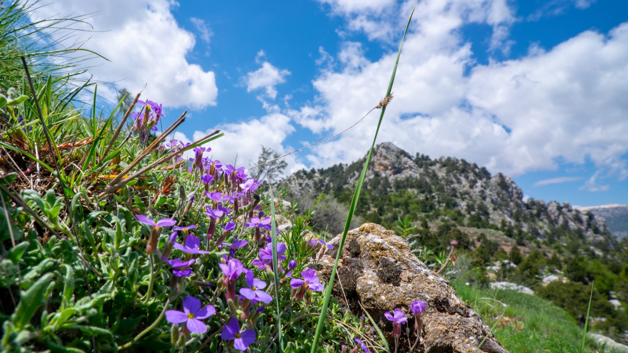 Süs bitkisi olarak yetiştirilen ve adonis olarak da bilinen Kaya teresi çiçeğinin Antalya`nın yüksek kesimlerinde doğal olarak yetişen türü mor kaya teresi.