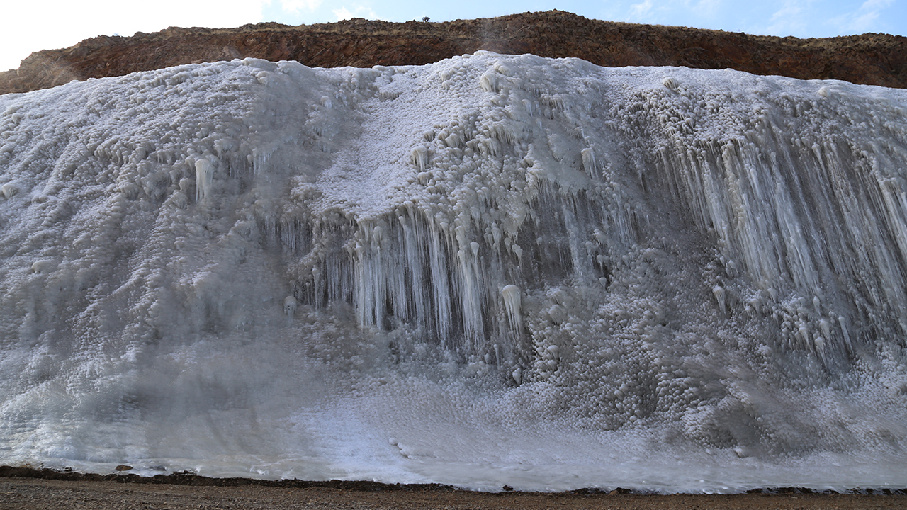Bu sistemle hava sıcaklığının sıfırın altına düşmesiyle gerçekleştirilen sulama sayesinde dağda yapılan buz parkında kısa sürede buzul kütleleri oluştu.