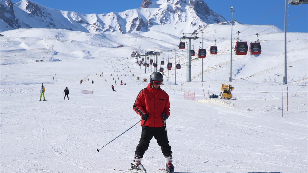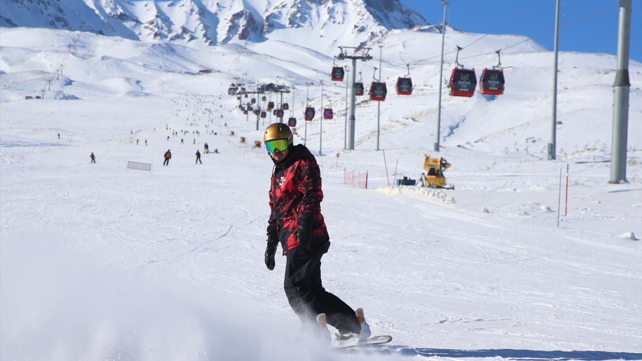 Türkiye`nin ve dünyanın gözde kayak merkezlerinden Kayseri Erciyes Kış Sporları ve Turizm Merkezi`nde ziyaretçiler, kayak yapmanın keyfini çıkardı.
