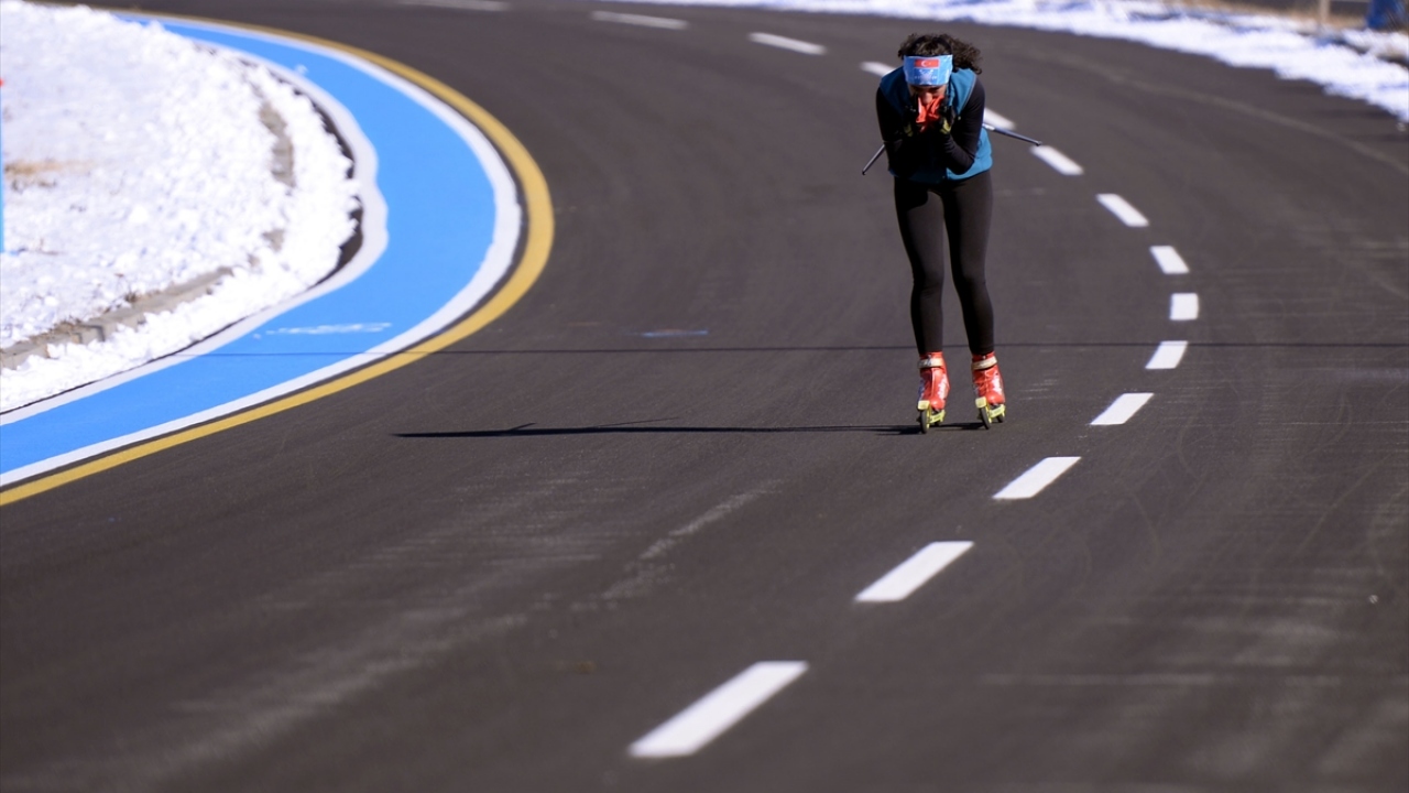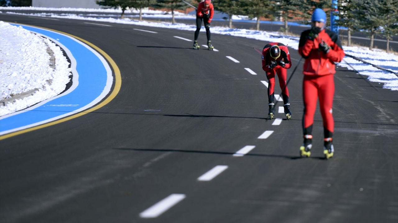 Kayaklı Koşu Milli Takımı, kampa girdiği Ardahan'da asfalt zeminde antrenman yaparak güç depoluyor.