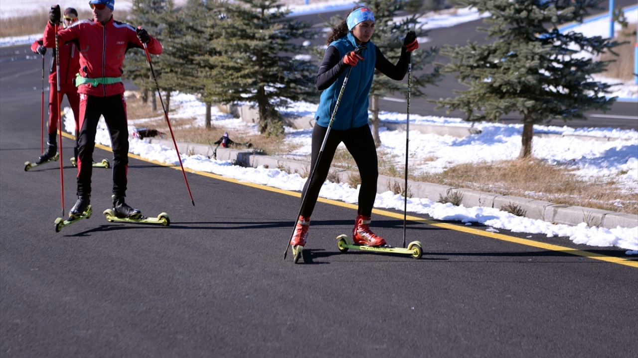 Yeterli kar yağışının henüz olmadığı kentte kampa giren Kayaklı Koşu Milli Takımı sporcuları, antrenmanların bir bölümünü trafiğe açık olan Ardahan Üniversitesi Kampüsü`ndeki asfalt yollarda gerçekleştiriyor.