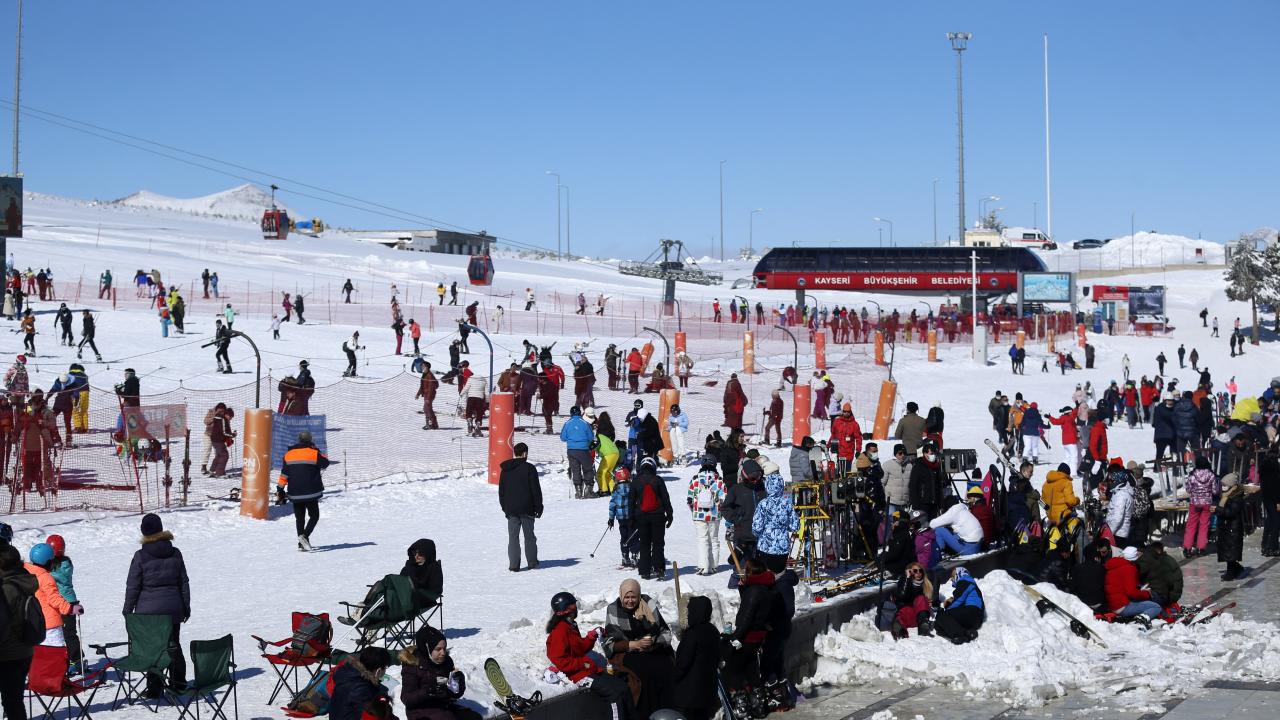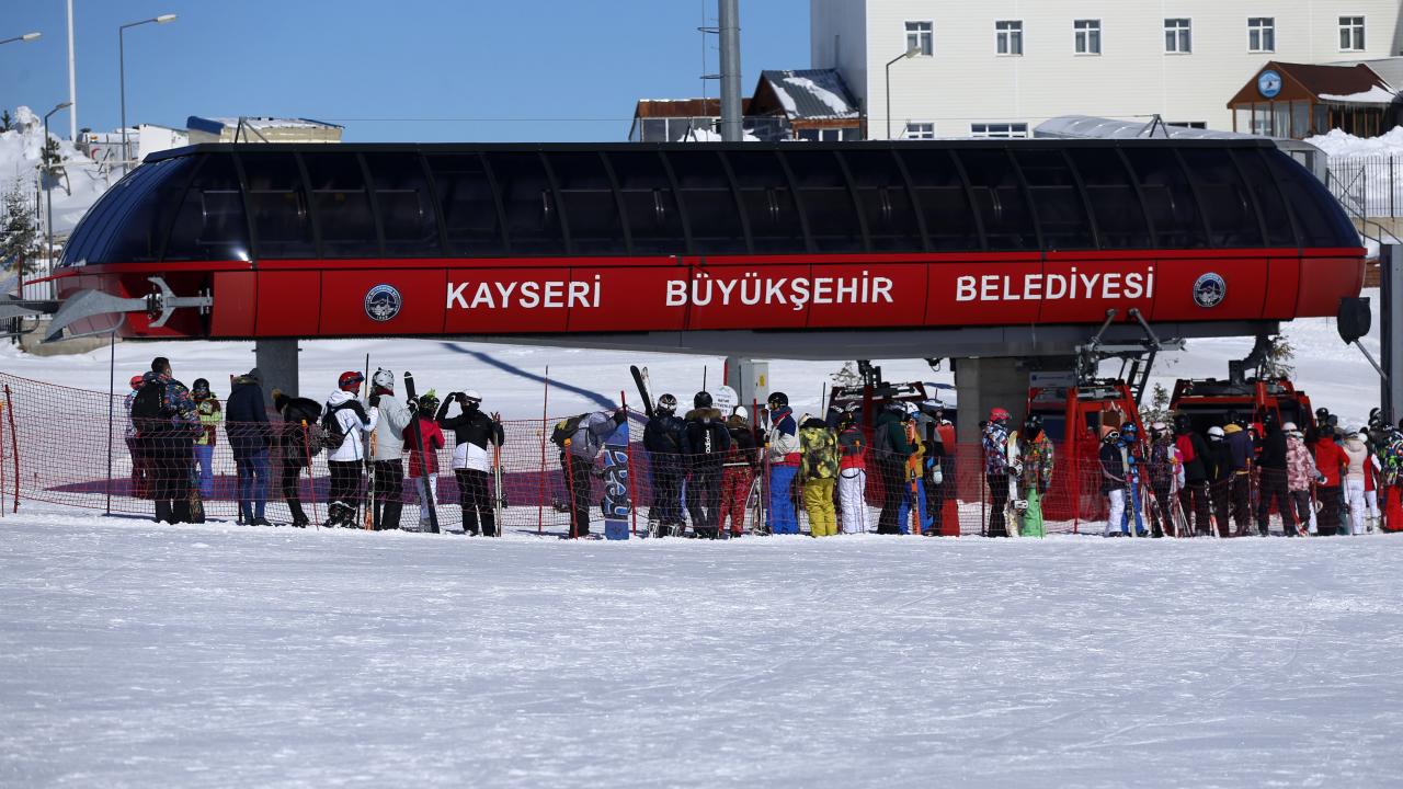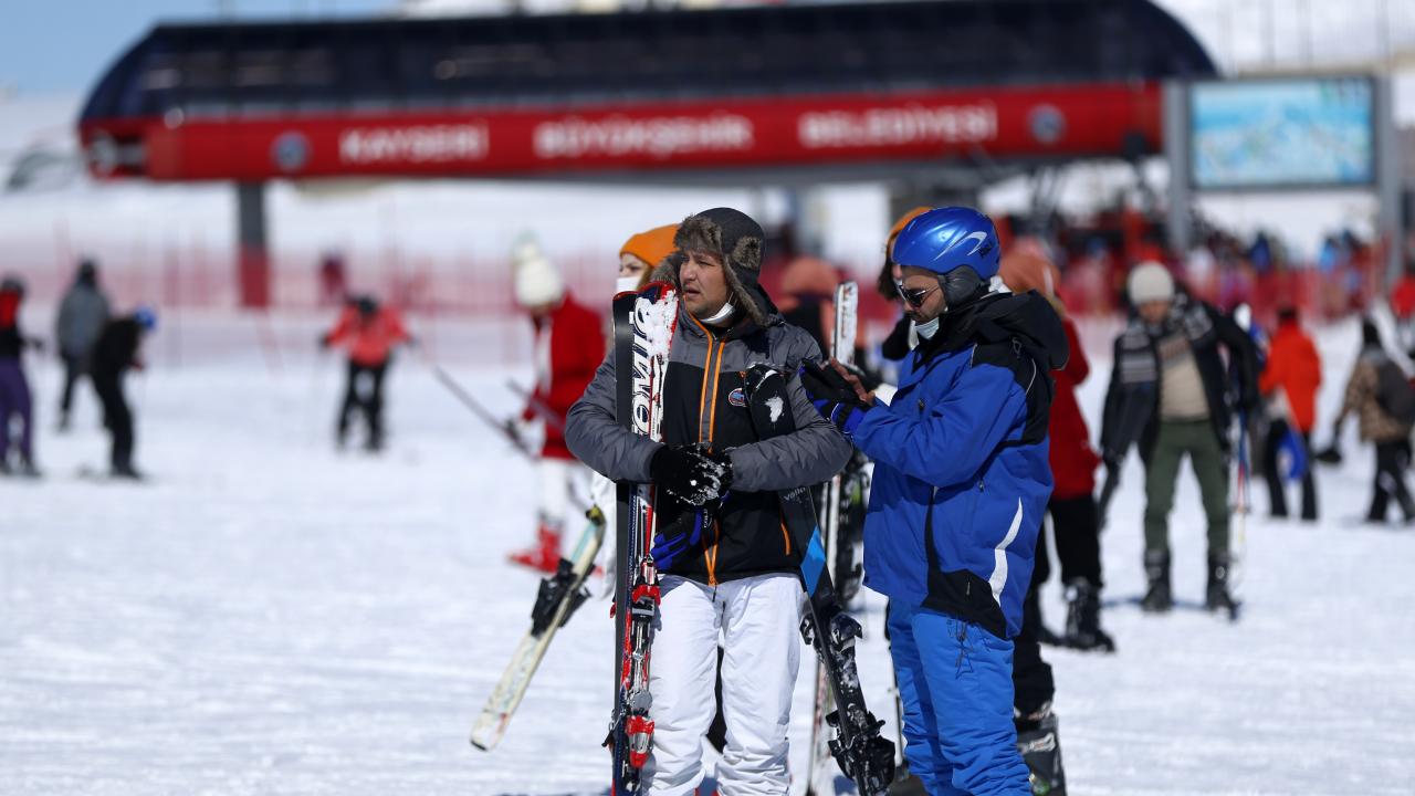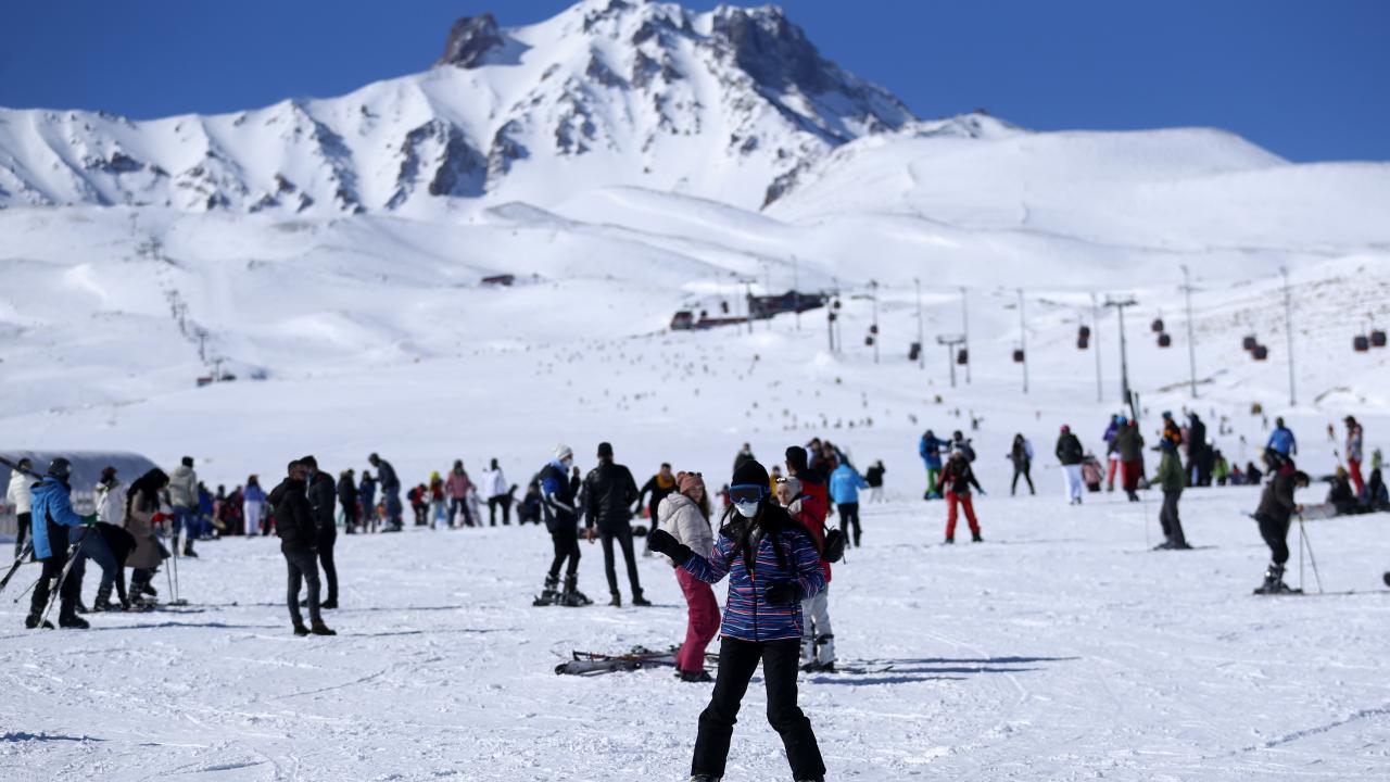 Charter seferlerle Ukrayna, Rusya, Polonya`dan Kayseri`ye gelen turistlerin yanı sıra hafta sonu tatilini Erciyes`te geçirmek isteyen ve yeni tip koronavirüs (Covid-19) tedbirleri kapsamında sokağa çıkma kısıtlaması öncesi seyahat ve konaklama belgesi alan yerli ziyaretçiler, pistlerde yoğunluk oluşturdu.