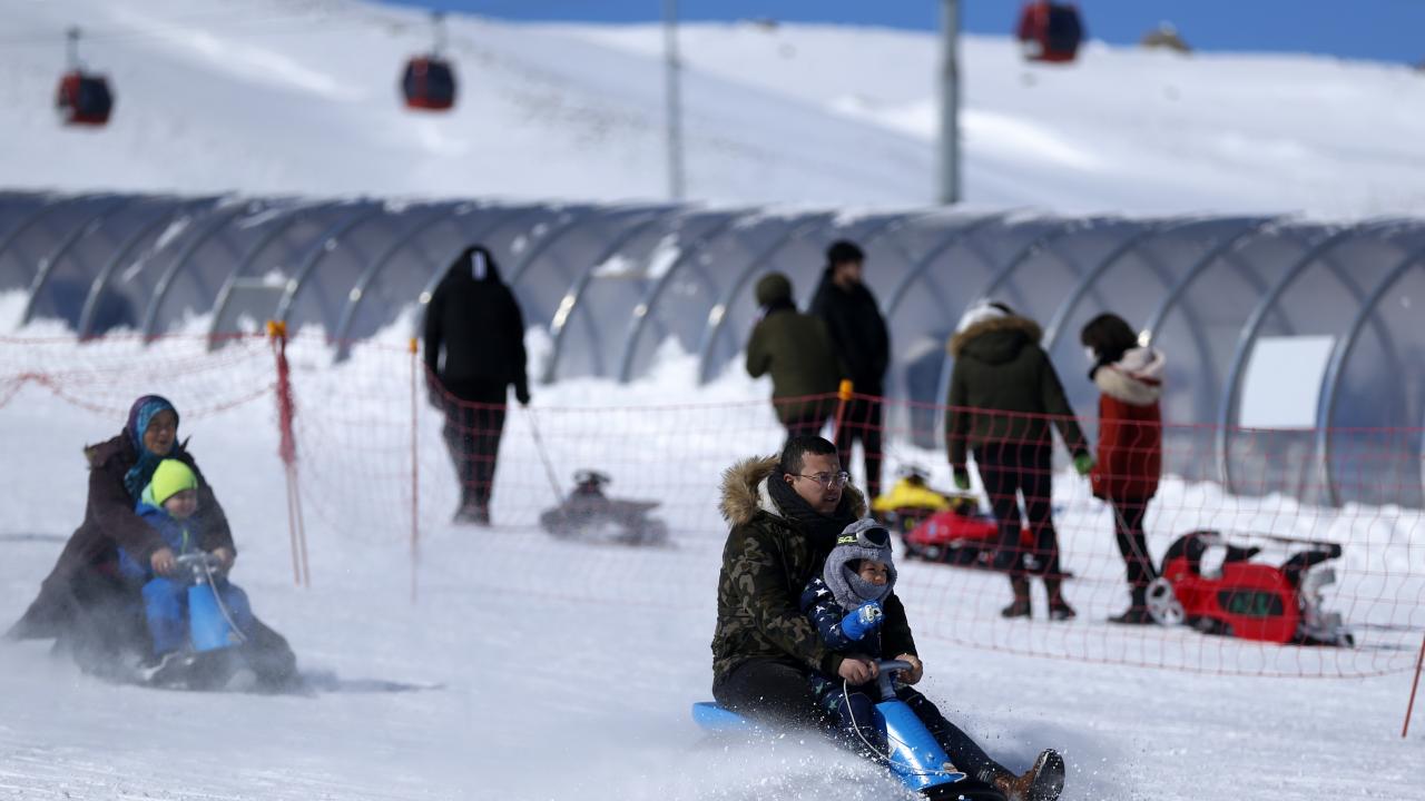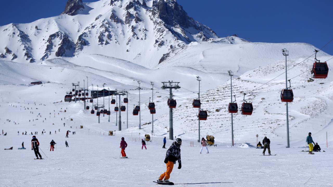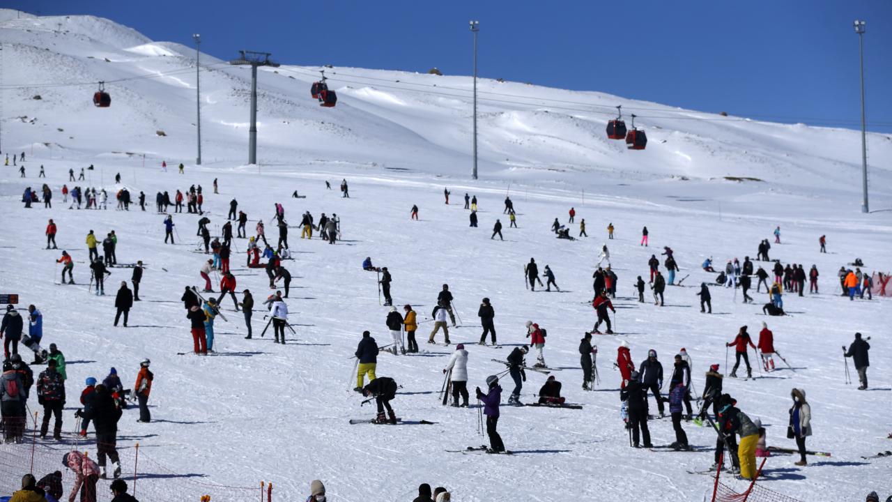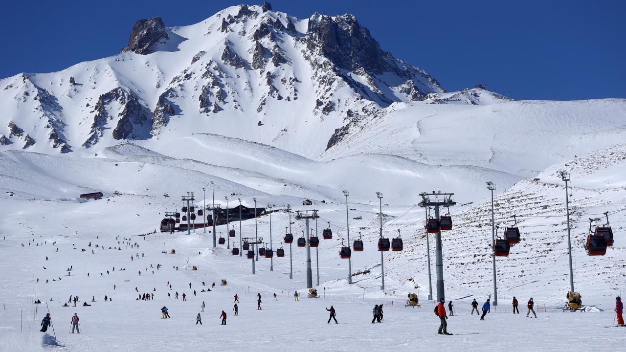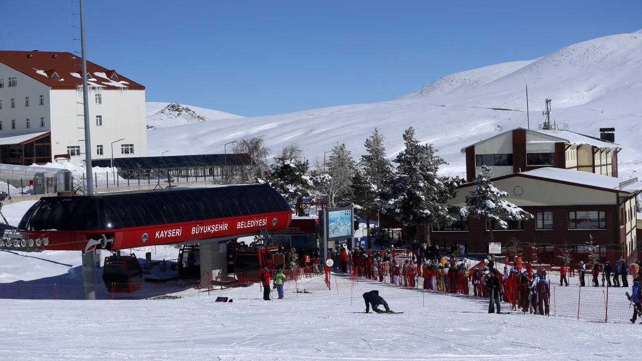 Charter seferlerle Ukrayna, Rusya, Polonya`dan Kayseri`ye gelen turistlerin yanı sıra hafta sonu tatilini Erciyes`te geçirmek isteyen ve yeni tip koronavirüs (Covid-19) tedbirleri kapsamında sokağa çıkma kısıtlaması öncesi seyahat ve konaklama belgesi alan yerli ziyaretçiler, pistlerde yoğunluk oluşturdu.