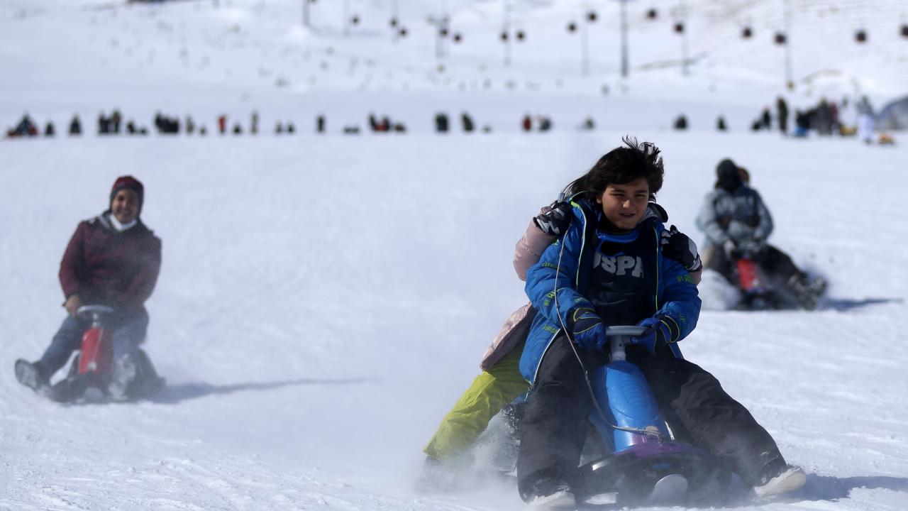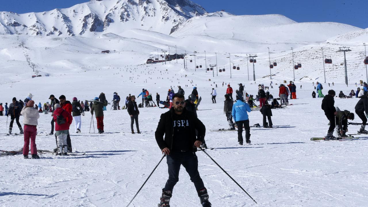 Erciyes`te pistleri dolduran tatilciler, kayak ve snowboard yaparak keyifli vakit geçirdi.