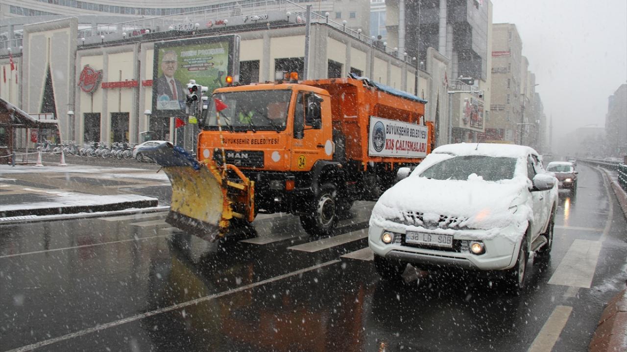 Kayseri'de dün akşamdan itibaren aralıklarla yağan kar yağışı sabah saatlerinden itibaren etkisini artırdı.