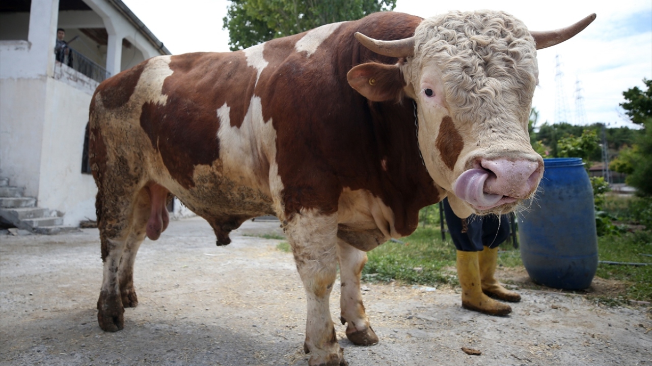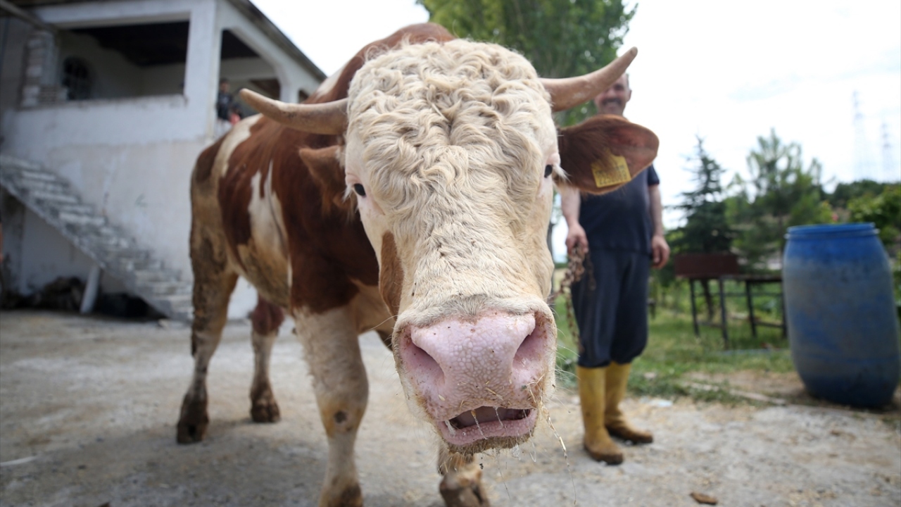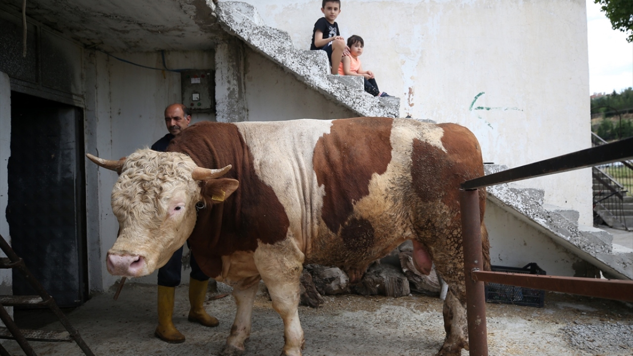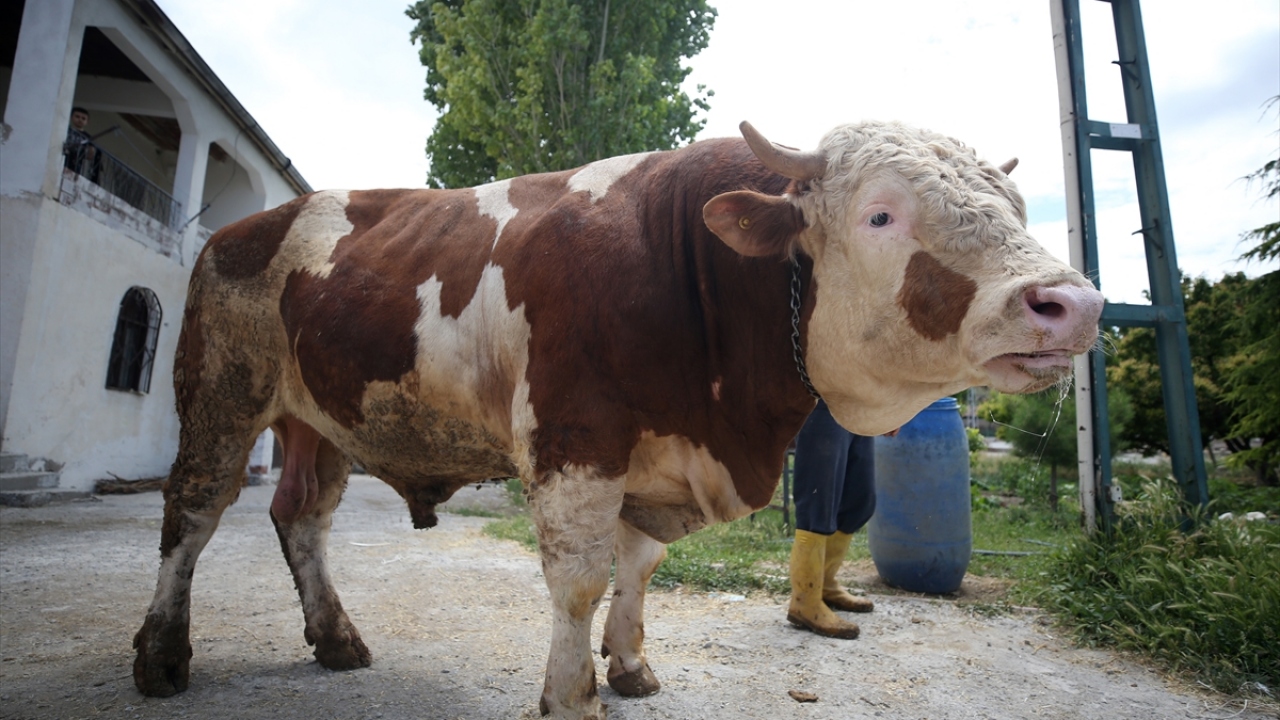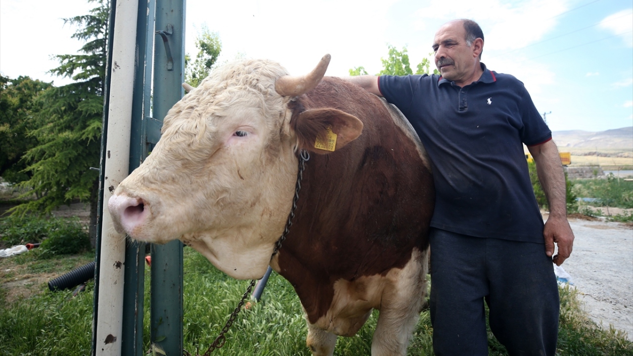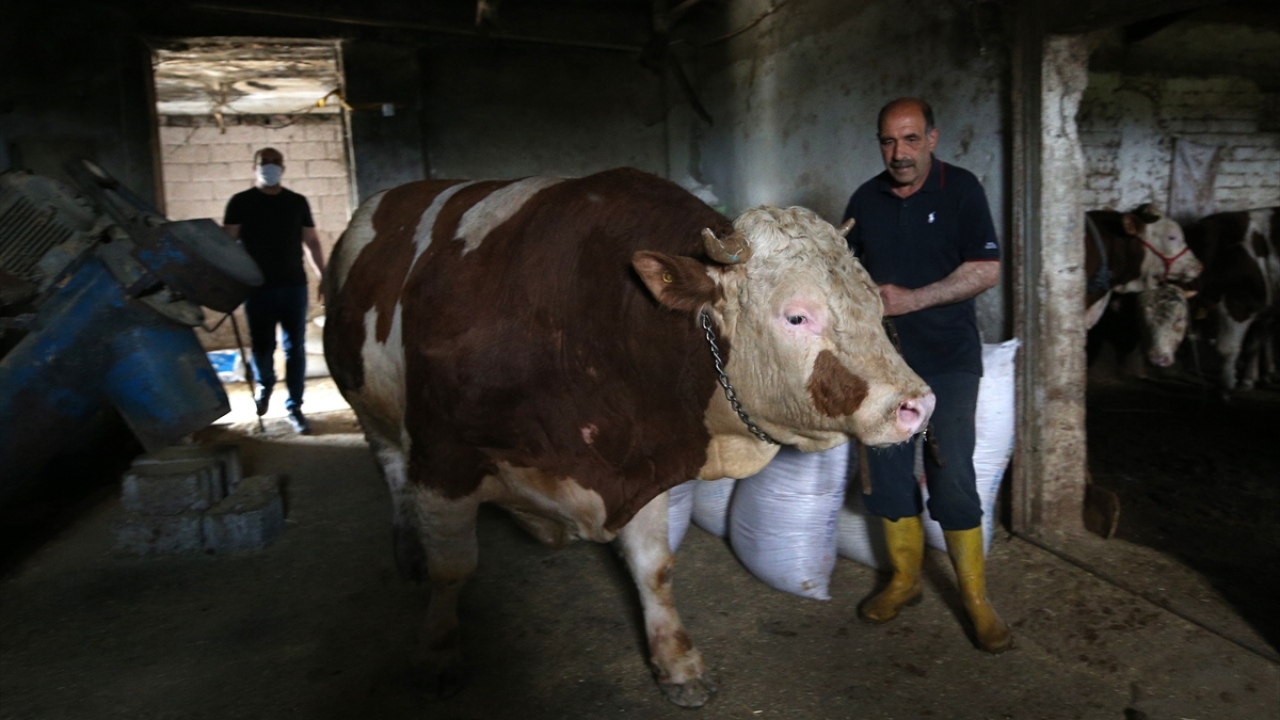"Şampiyon bizim göz bebeğimiz" diyen Arslan, 3 yaşındaki simental cinsi hayvanın, 1 ton 100 kilogram ağırlığında olduğunu ve 30 bin liradan satışa sunduklarını ifade etti.