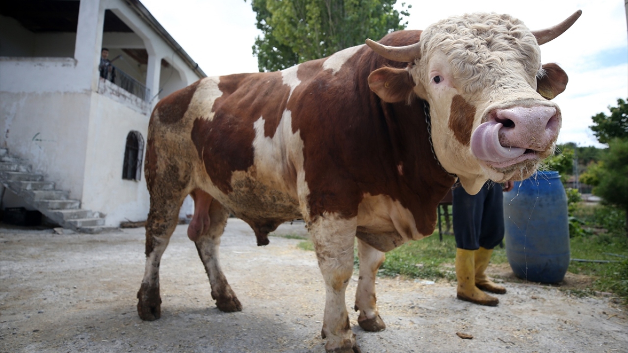 Kayseri'de bir besici "Şampiyon" ismini verdiği bin 100 kilogramlık kurbanlık tosunu 30 bin liradan satışa sundu.