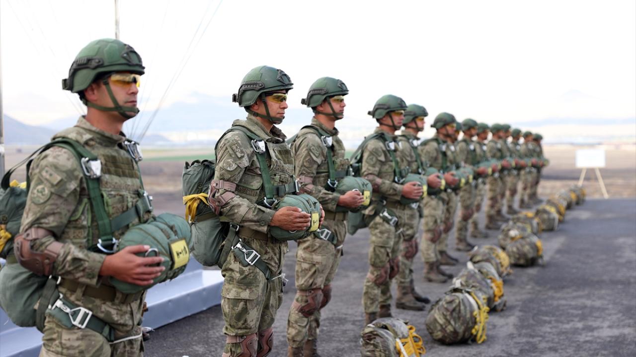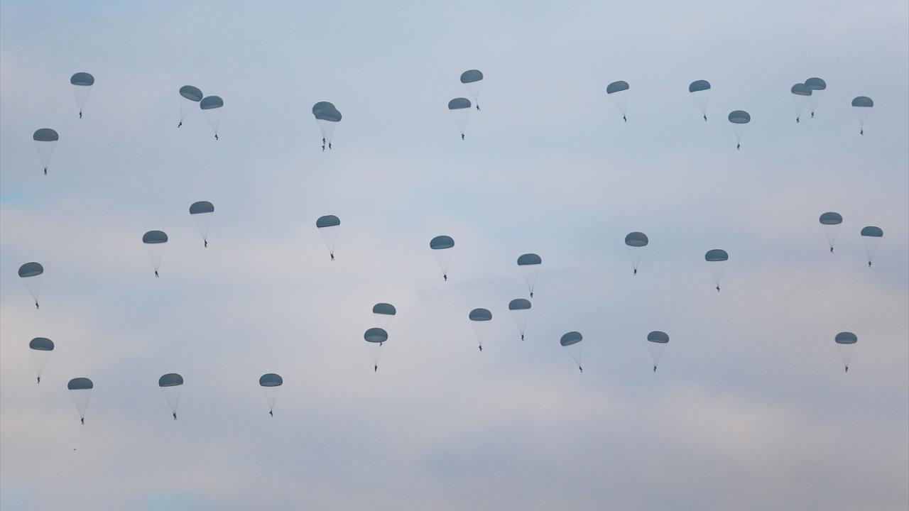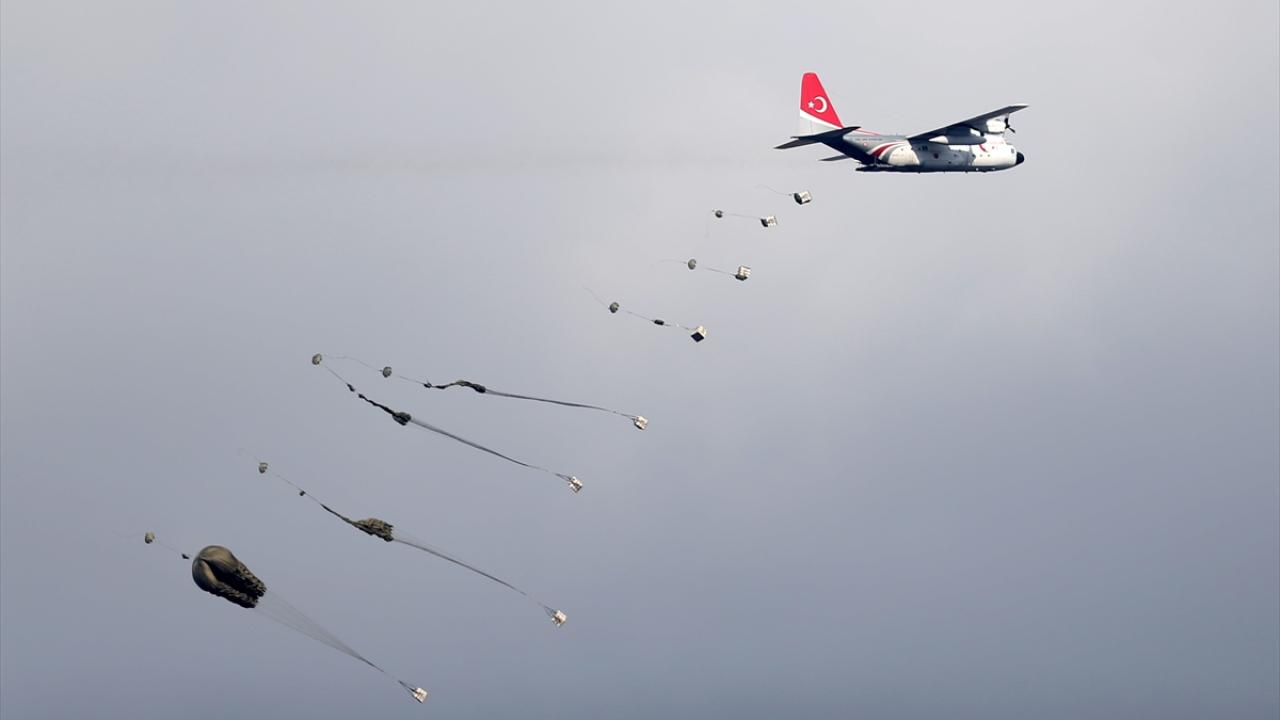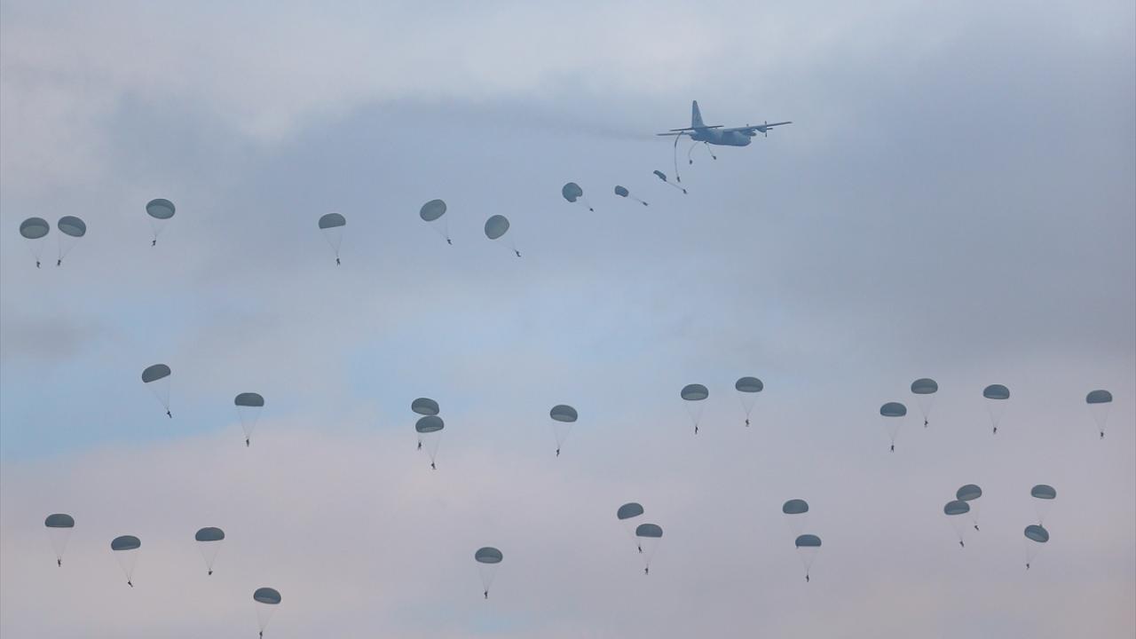 Tatbikat senaryosu kapsamında 12. Hava Ulaştırma Ana Üs Komutanlığından havalanan C-130 ve C-160 nakliye uçaklarındaki 180 paraşütçü komando, bölgeye indi.