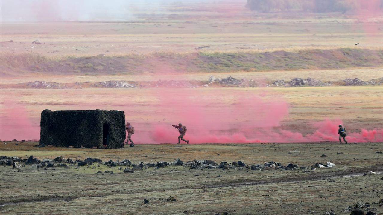 Paraşütle atlayan komandolar, temsili düşman muharebe merkezine operasyon düzenledi. Teröristlerden arındırılan bölgede bir hedef SİHA ile vuruldu. Düşman bölgesine helikopterle indirilen toplarla da bölgenin hakim noktasındaki hedefler imha edildi.