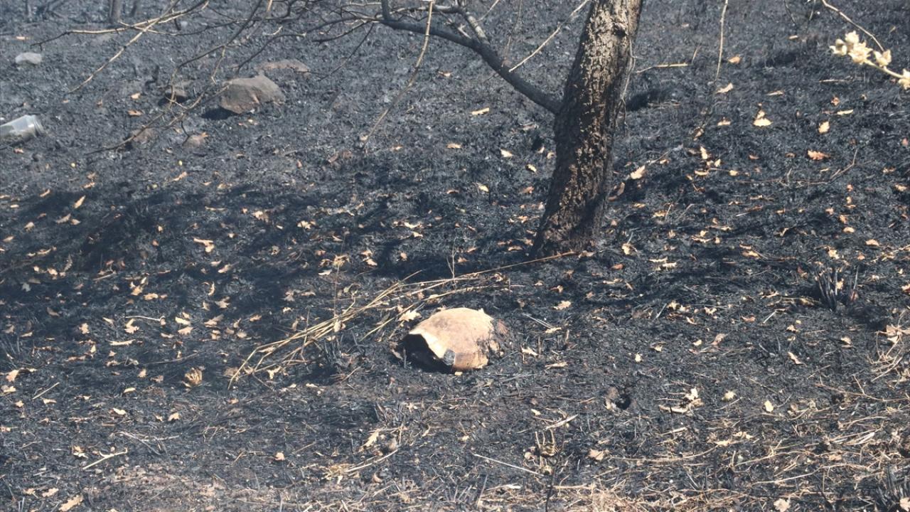 Alevlerin ortasında kalan kaplumbağalar telef oldu, bazı evlerin bahçesindeki ağaçlar zarar gördü.