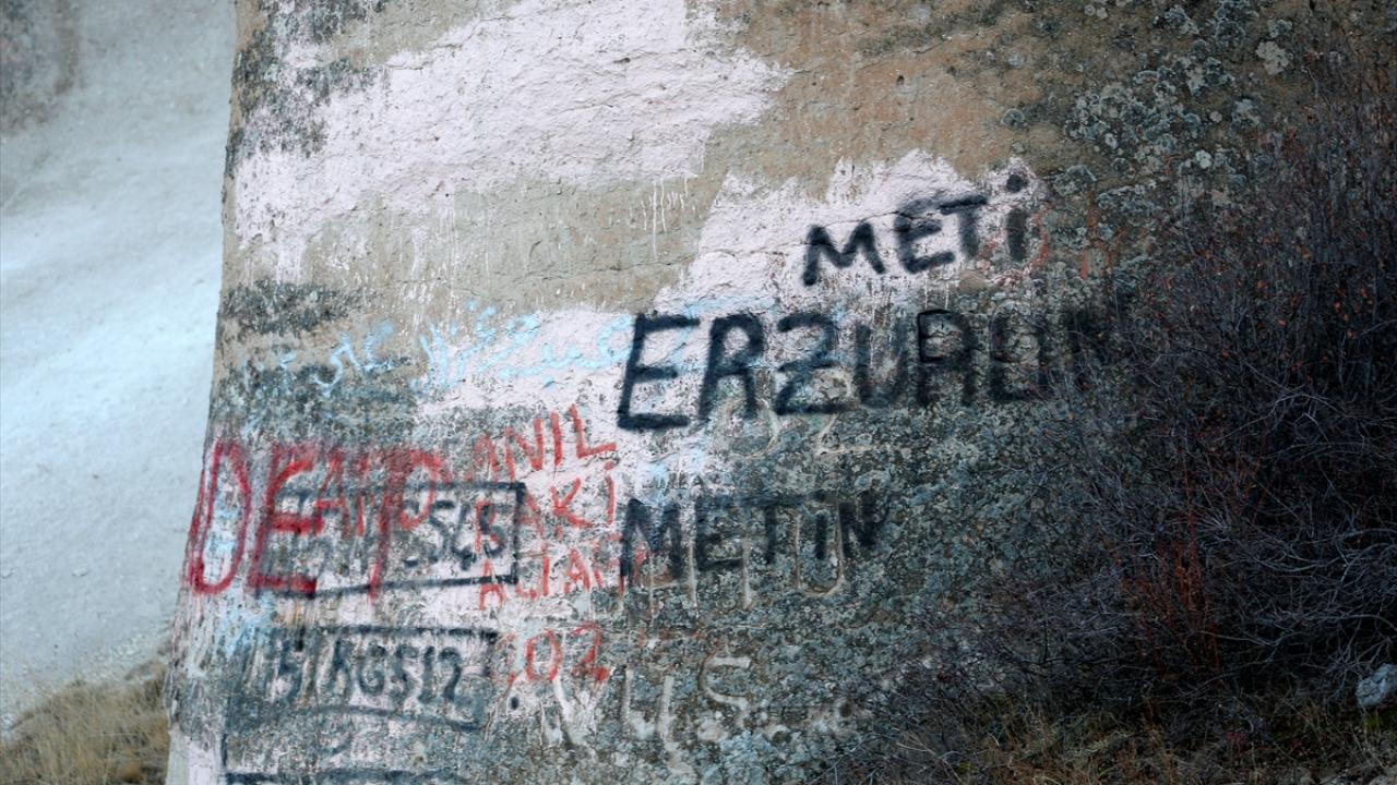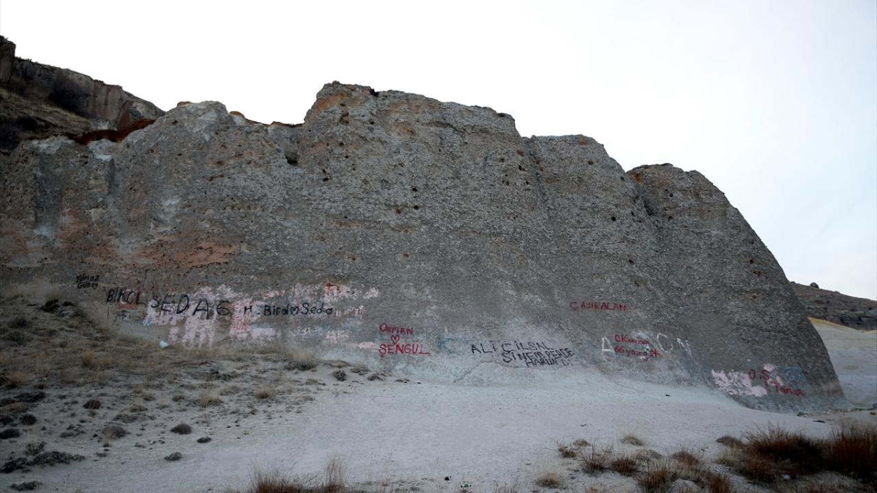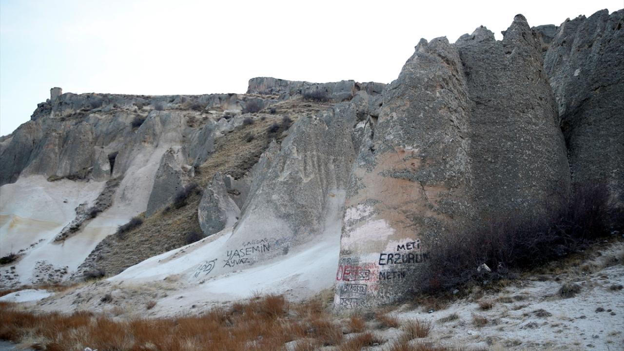 Kayseri'de peribacası benzeri doğal oluşumların üzerine yazılan yazılar tepki çekiyor