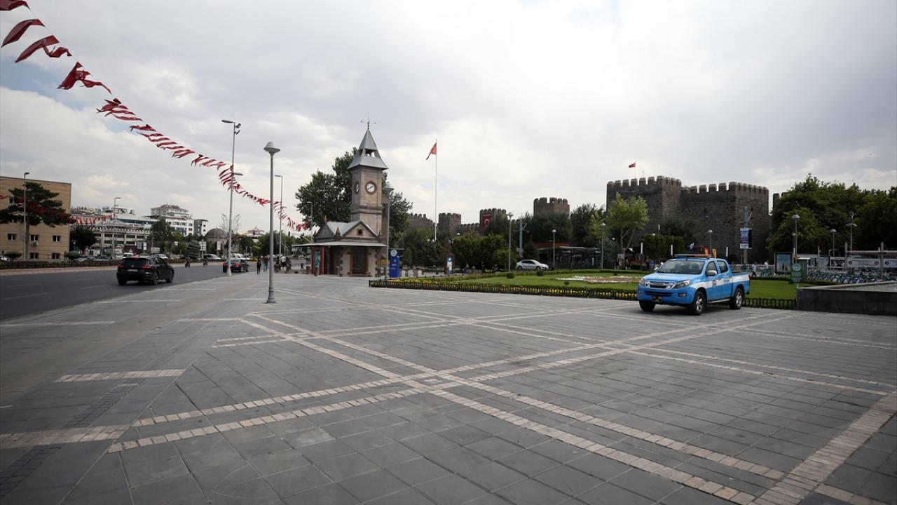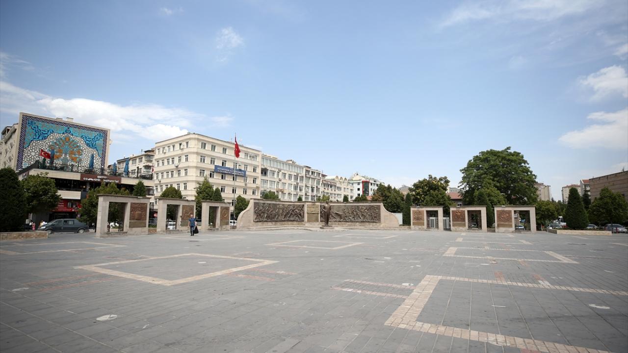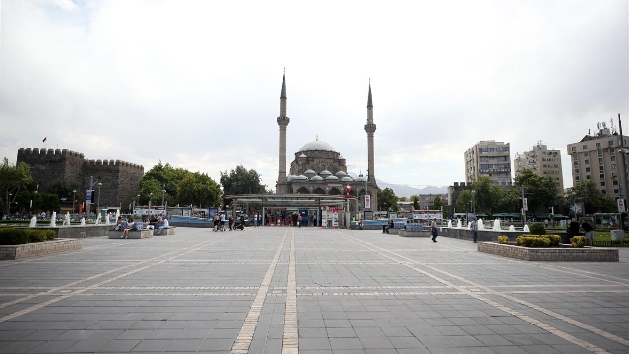 Kayseri`de Cumhuriyet Meydanı ve kentin diğer işlek noktaları, sıcak hava nedeniyle boş kaldı.