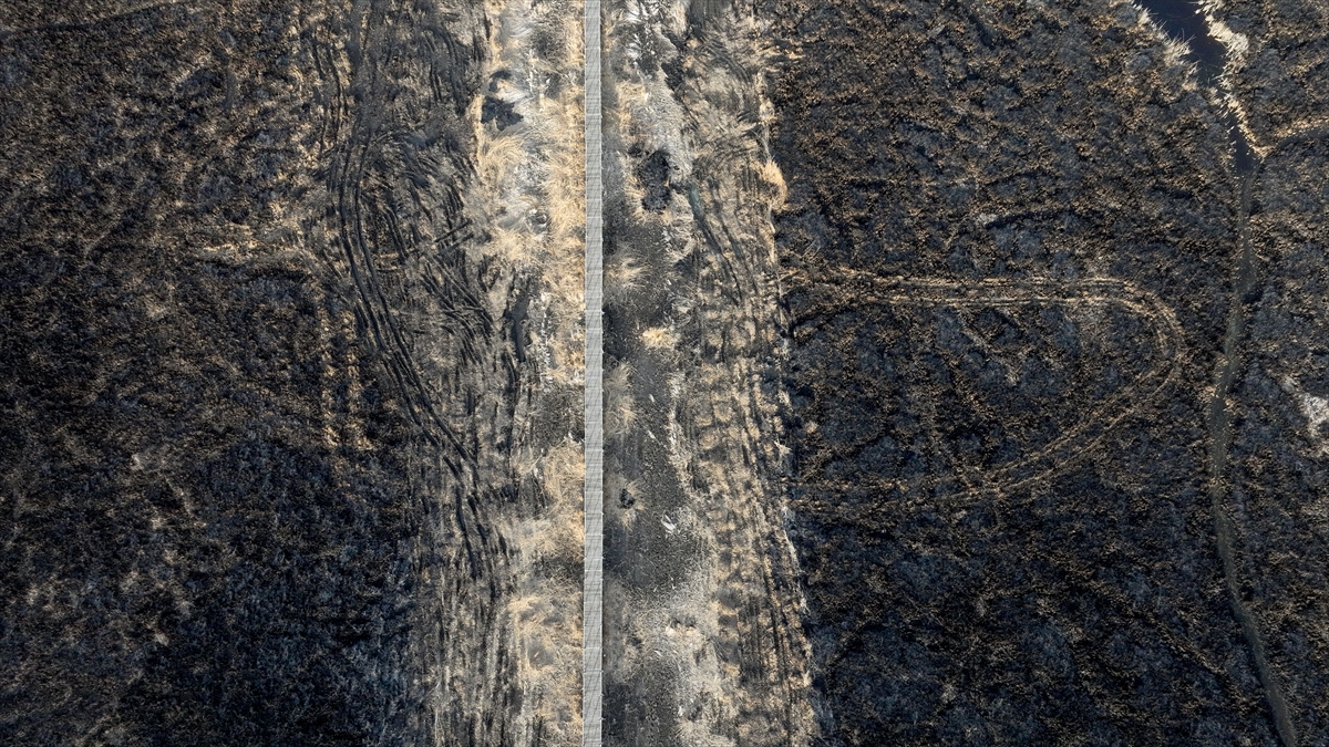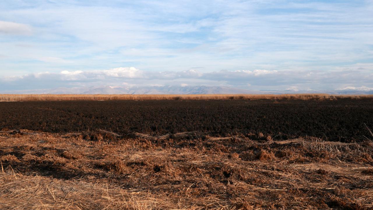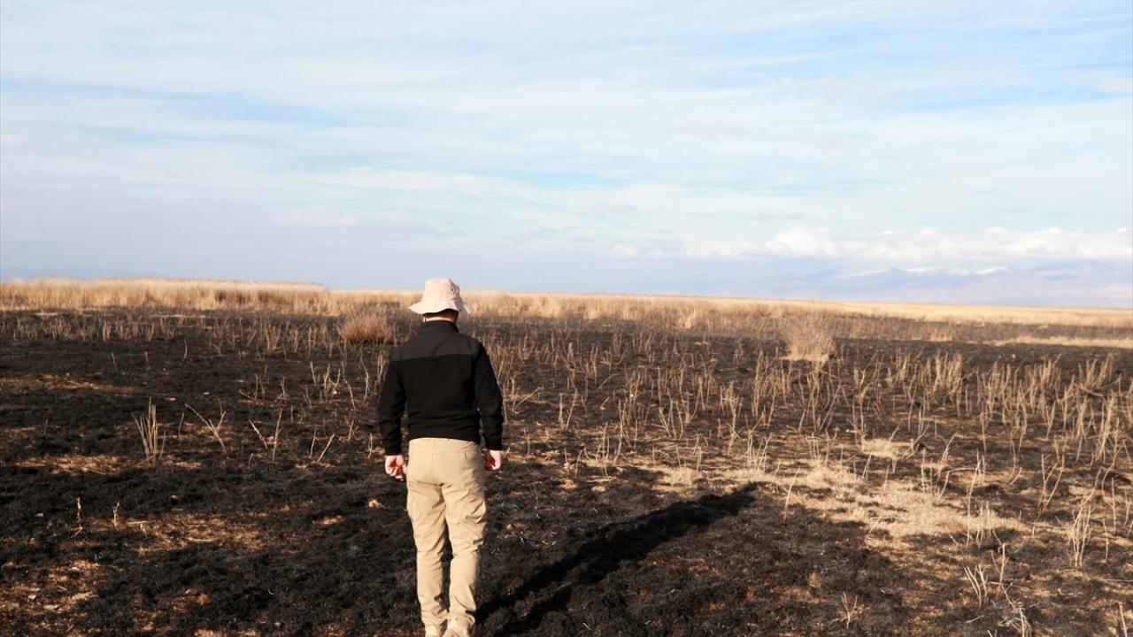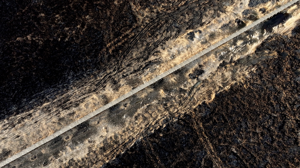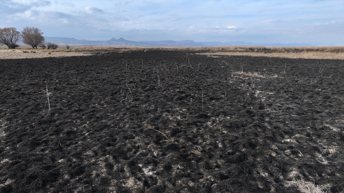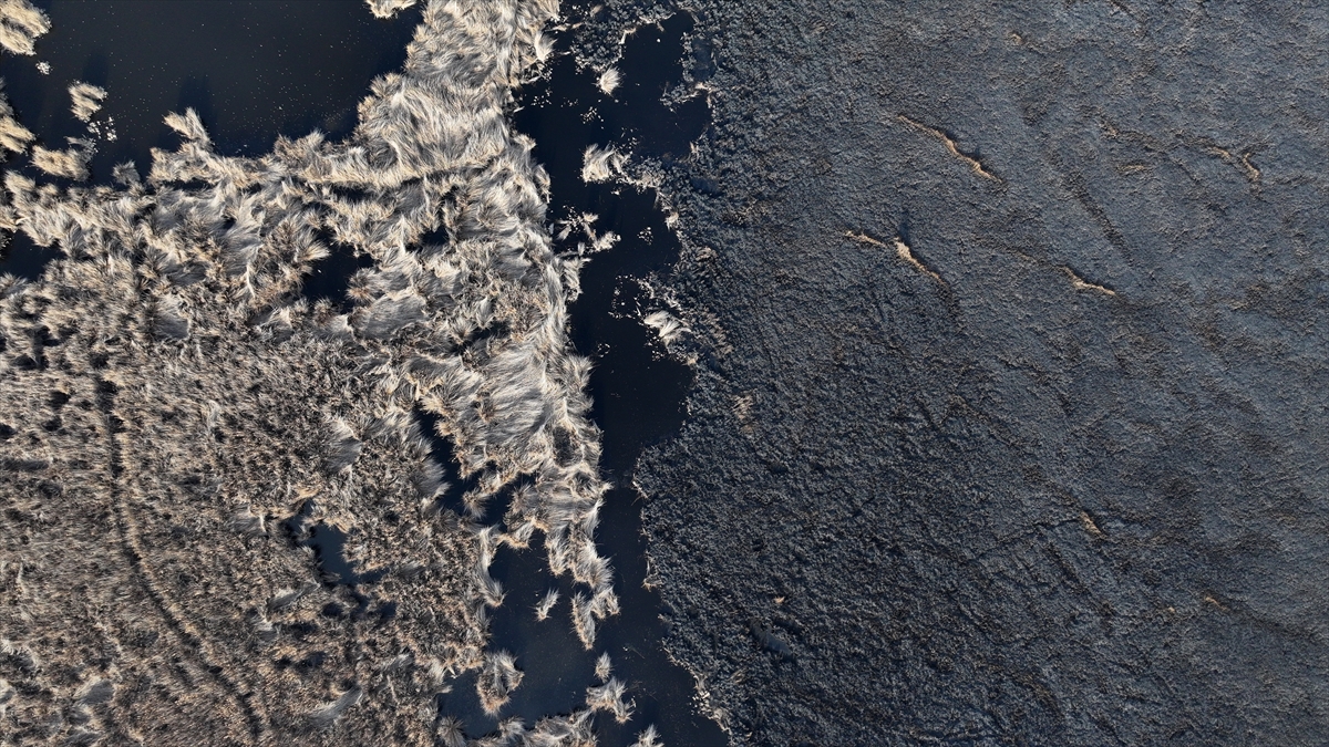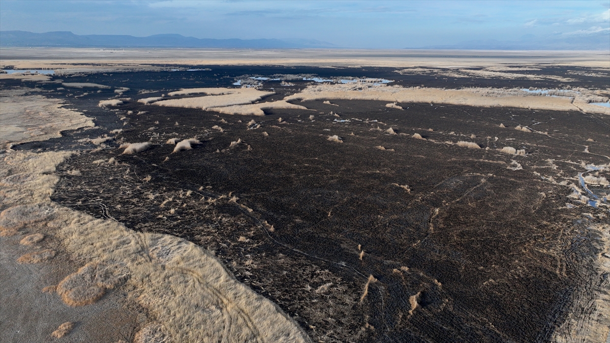 Görüntülerde farklı noktalarda geniş alanların yandığı, bazı bölgelerde ise sulak alanların yangının yayılmasını engellediği görülüyor.