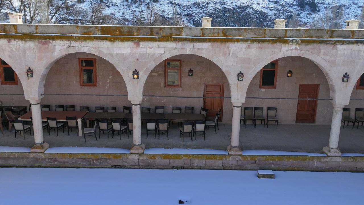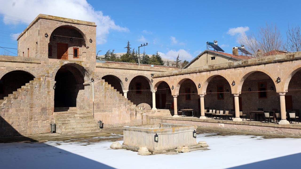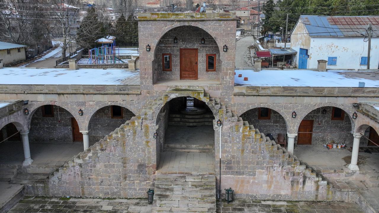 Kayseri'nin Develi ilçesinde 1893'te yaptırılan Hamidiye Medresesi, halk eğitim merkezinin açtığı kilim dokuma kursuna katılan kadınları ağırlıyor.