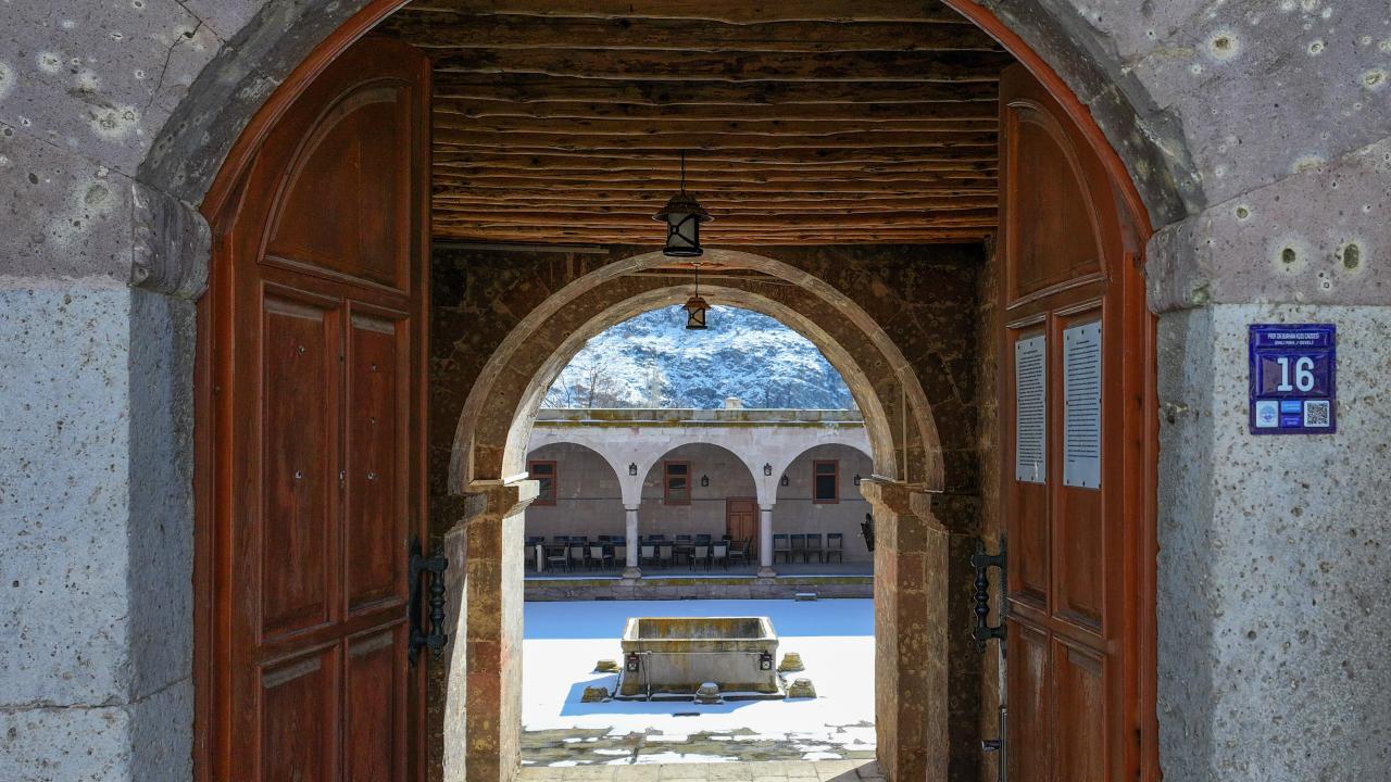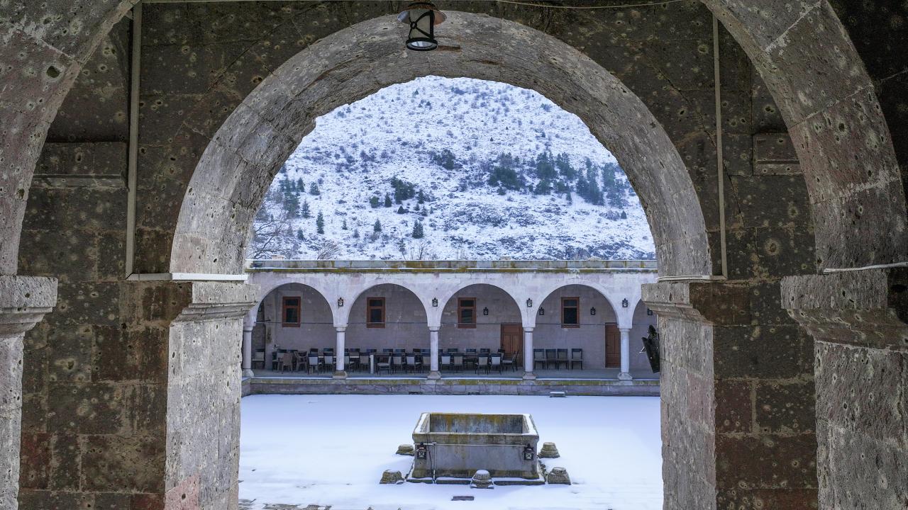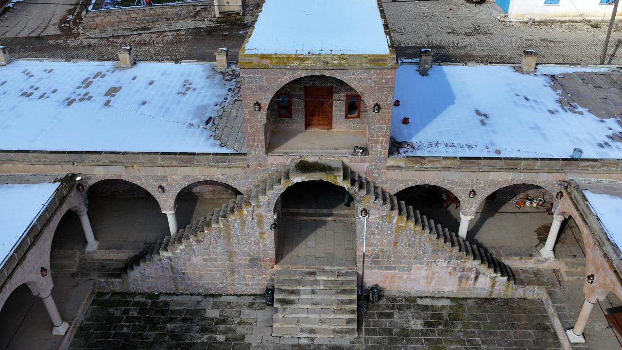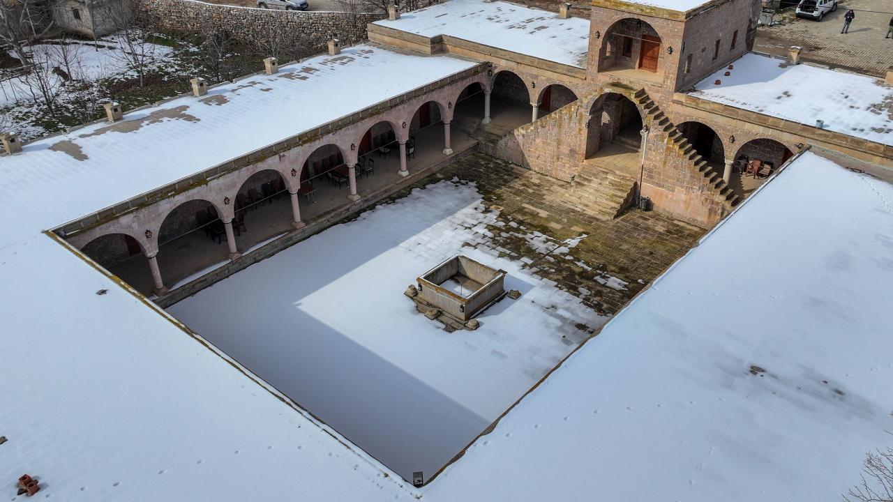 Kayseri'nin Develi ilçesinde 1893'te yaptırılan Hamidiye Medresesi, halk eğitim merkezinin açtığı kilim dokuma kursuna katılan kadınları ağırlıyor.