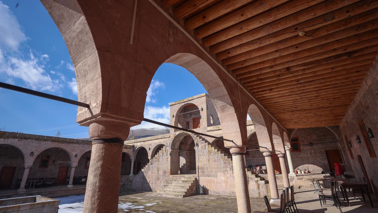 Yaklaşık 130 yıl önce yapımı tamamlanan medrese, günümüzde hem tarihin izlerini taşıyor hem de geçmişteki kilim motiflerinin yeniden işlenmesine ev sahipliği yapıyor.