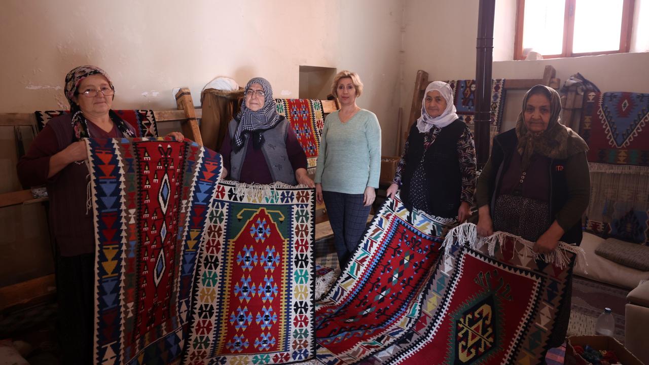 Hamidiye Medresesi`nde bir araya gelen yaklaşık 15 kadın, dokudukları kilimleri Büyükşehir Belediyesine satarak aile ekonomilerine de katkı sağlıyor.